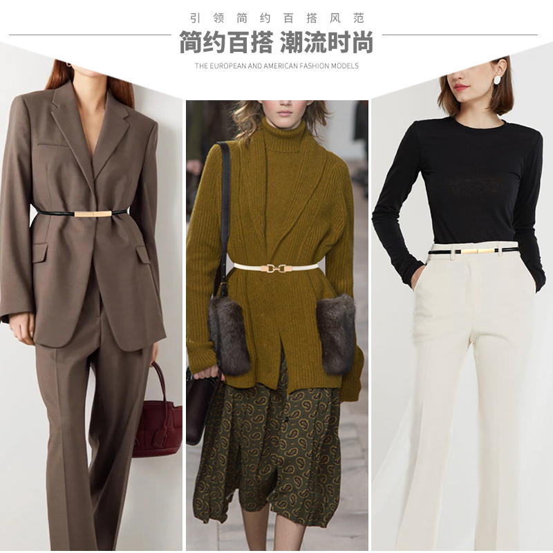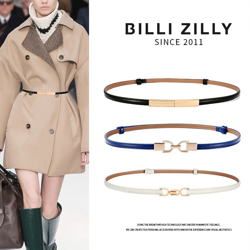 百搭女士细腰带配饰2025新款真皮设计感小众大衣毛衣皮带白色腰链