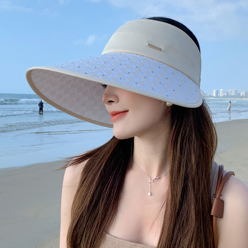 波点网纱空顶草帽时尚网红遮阳帽春夏女防紫外线空顶帽遮脸防晒帽