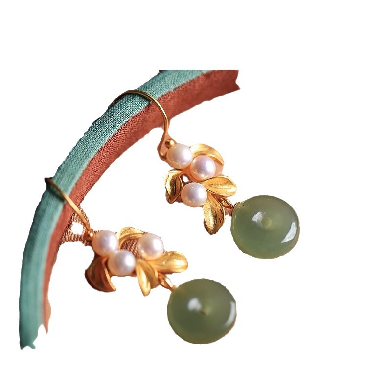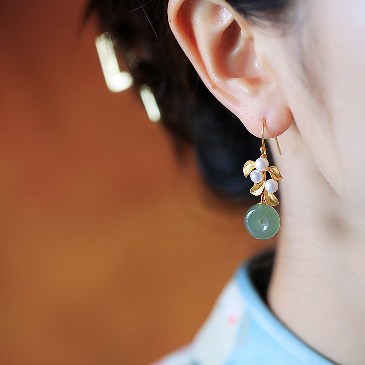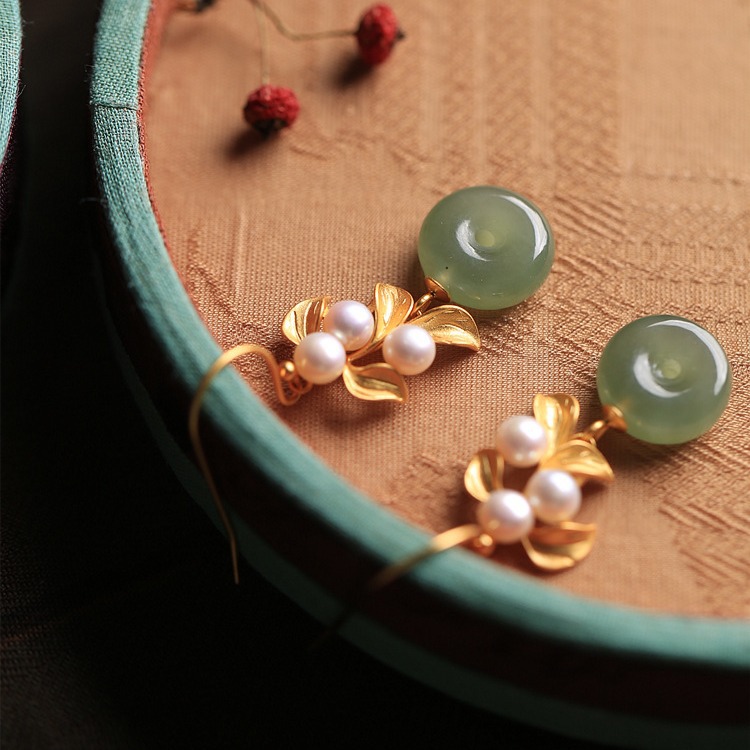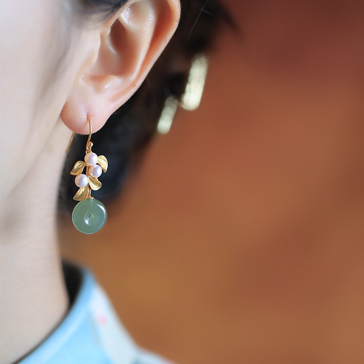 和田玉纯银古法金平安扣中国风复古气质耳环女耳饰耳坠