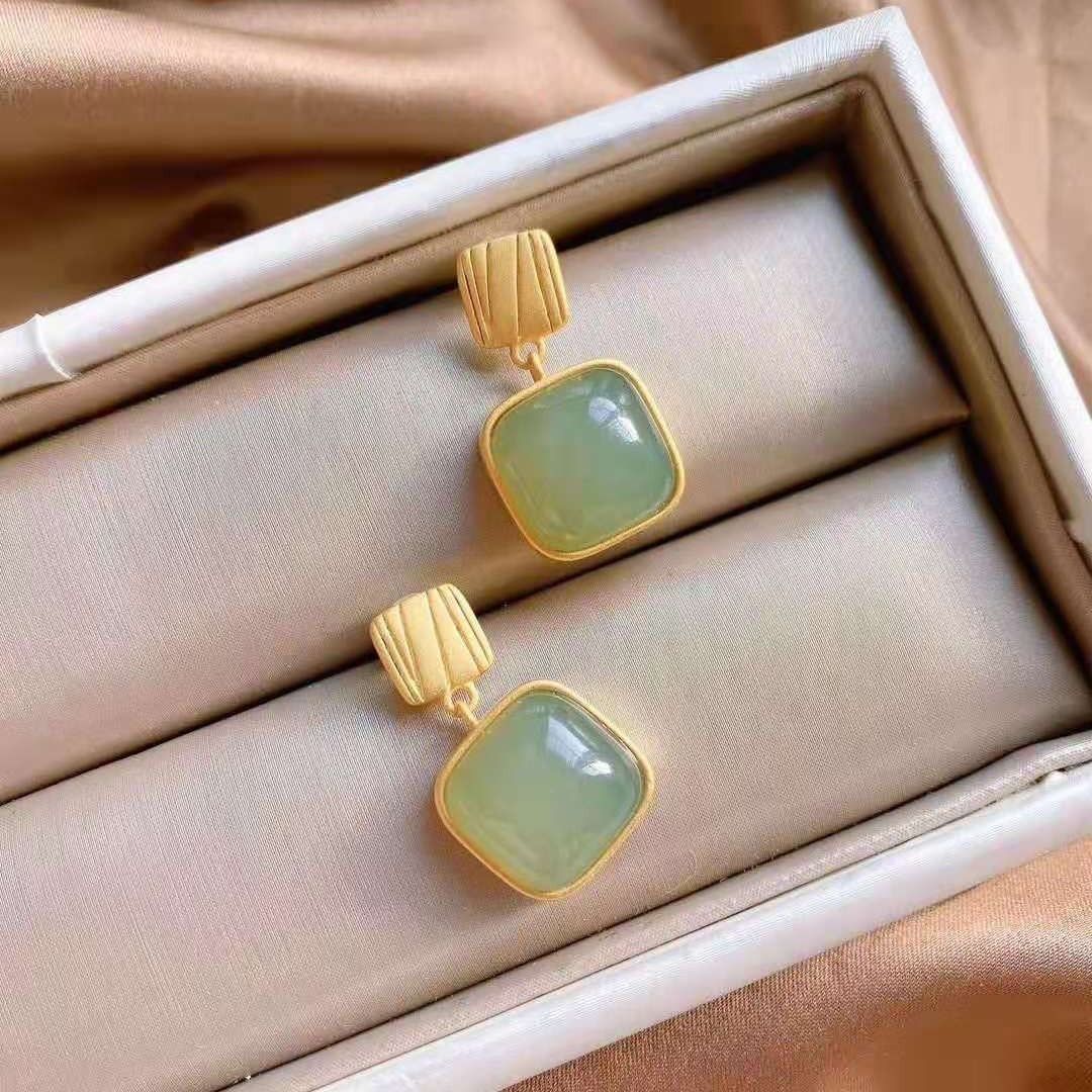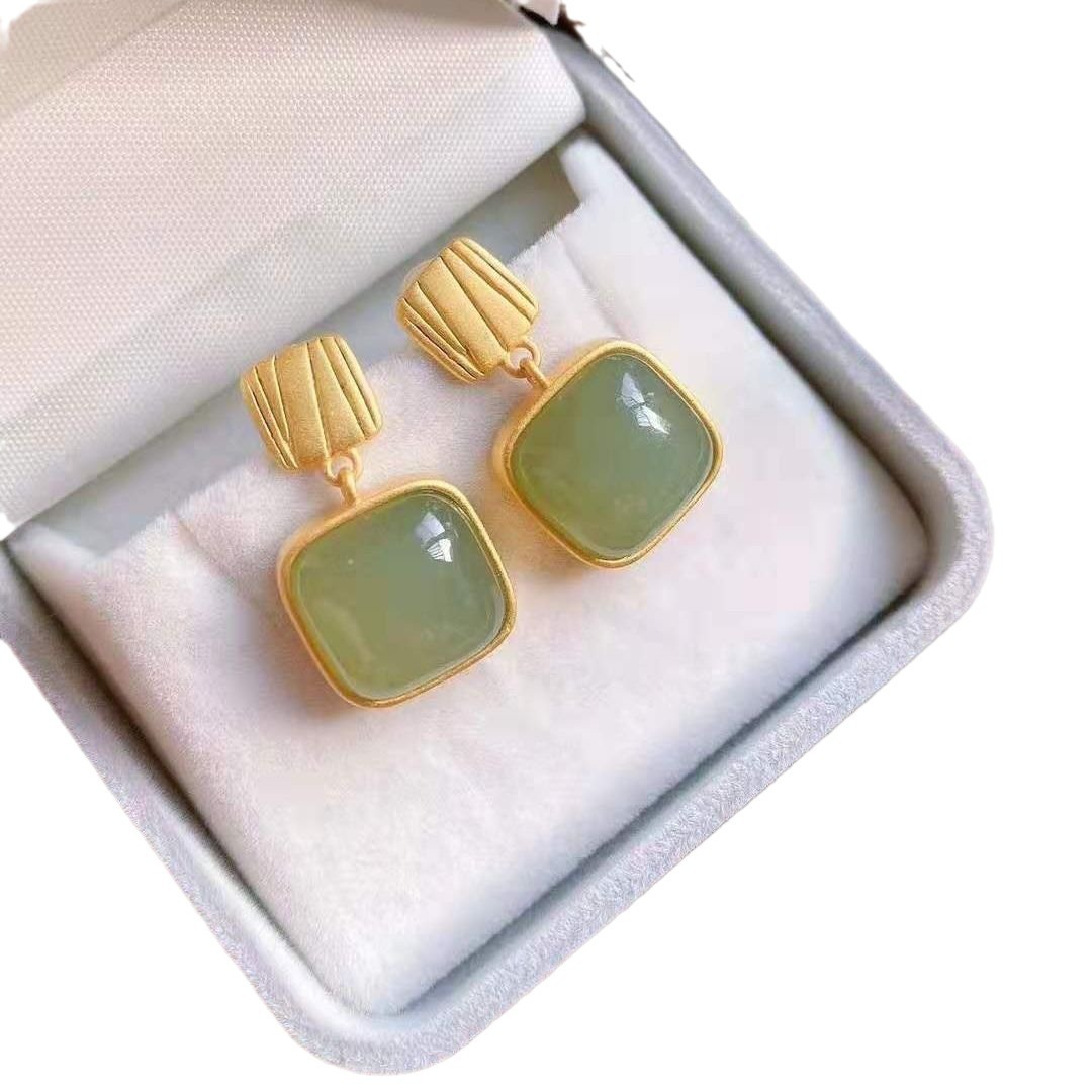 耳坠女士气质短款高级感圆脸适合的和田青玉耳环几何纯银金色耳钉