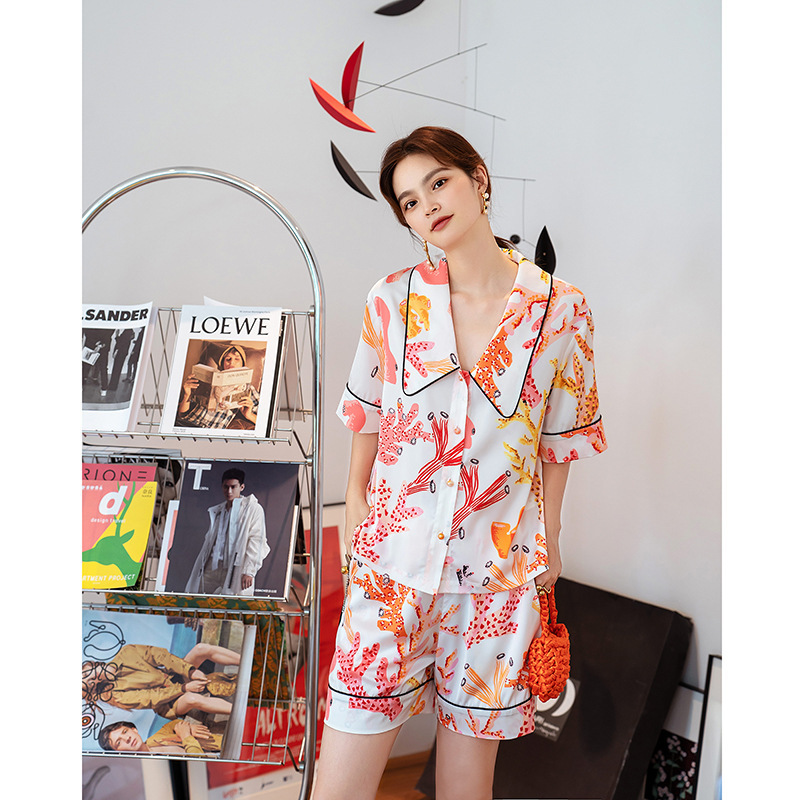 新款珊瑚冰丝睡衣女夏季薄款短袖短裤套装家居服网红大款