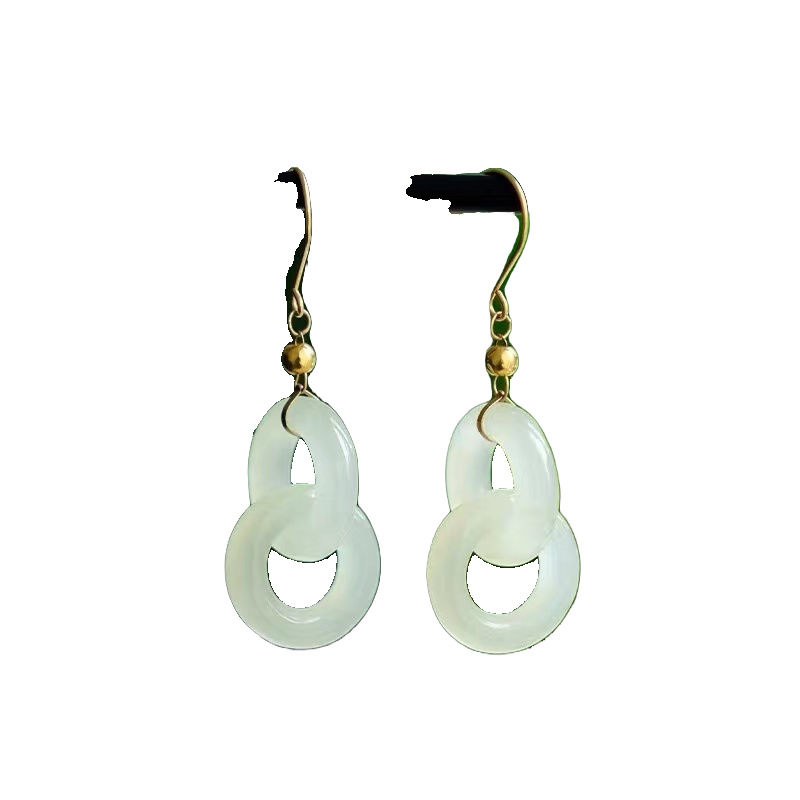925银和田玉环环相扣耳环女古典气质中国风耳饰女民族风耳坠白色