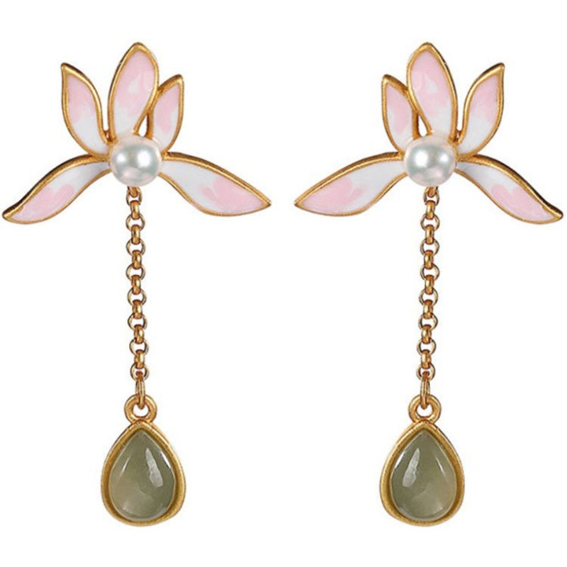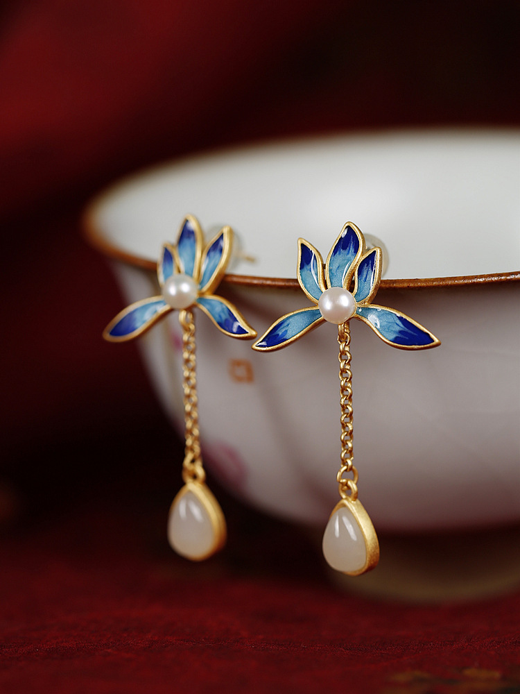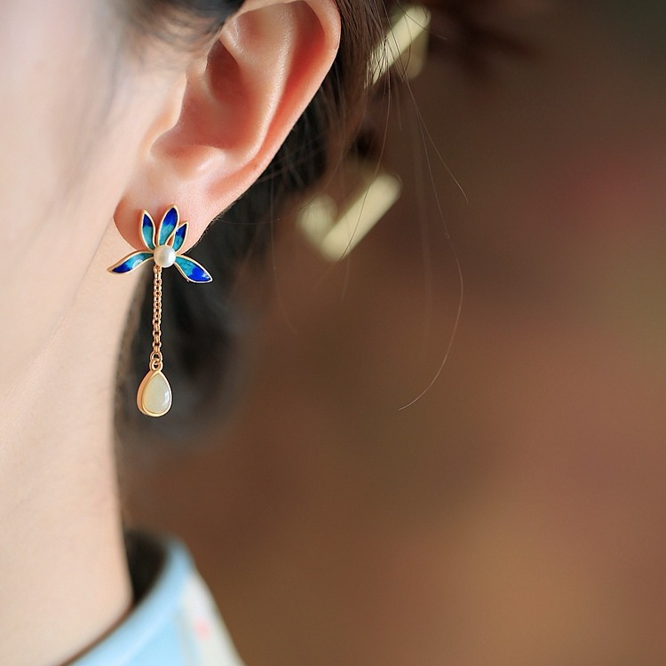纯银和田玉莲花耳环女古风高级感小众气质轻奢耳坠耳饰耳钉
