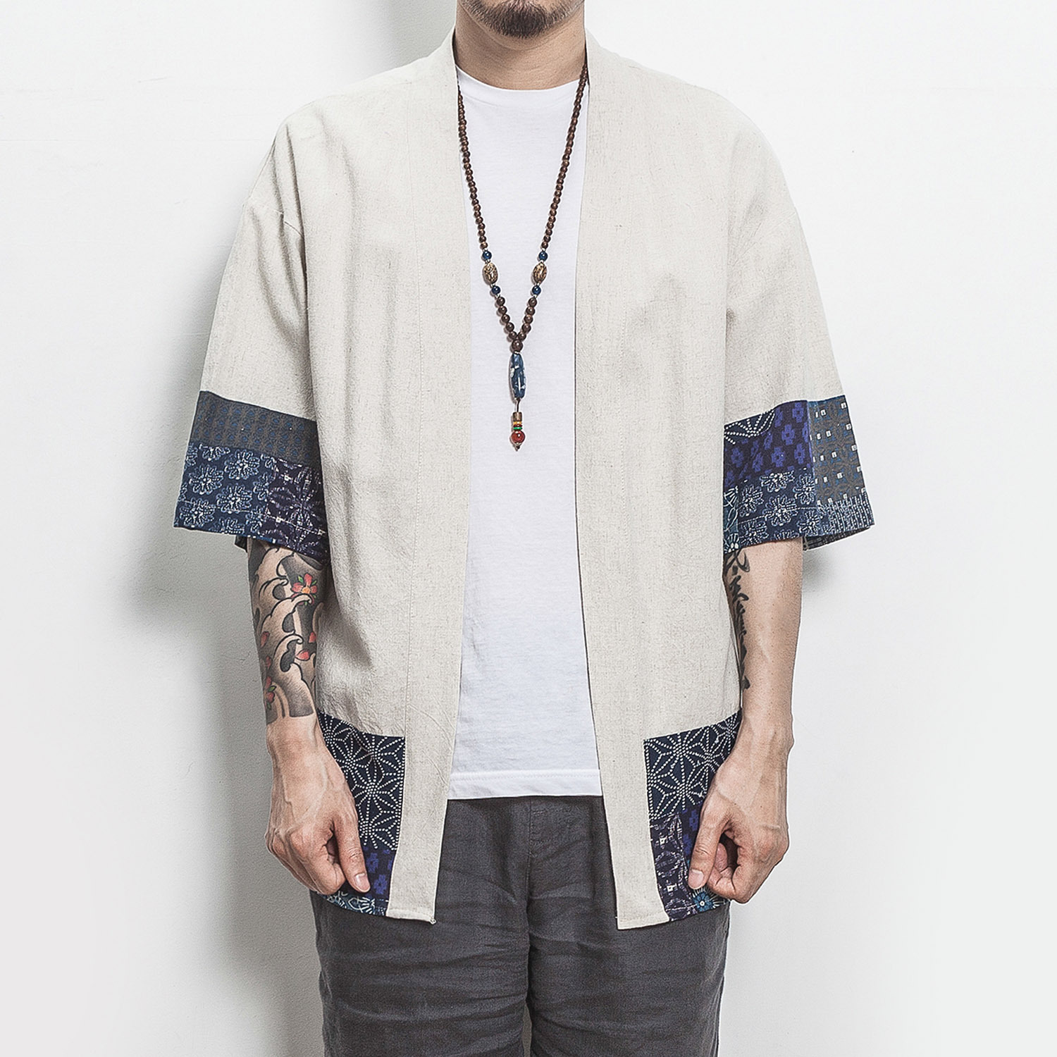 中国风男士汉服古风古装棉麻风衣外套禅修居士服亚麻中式唐装