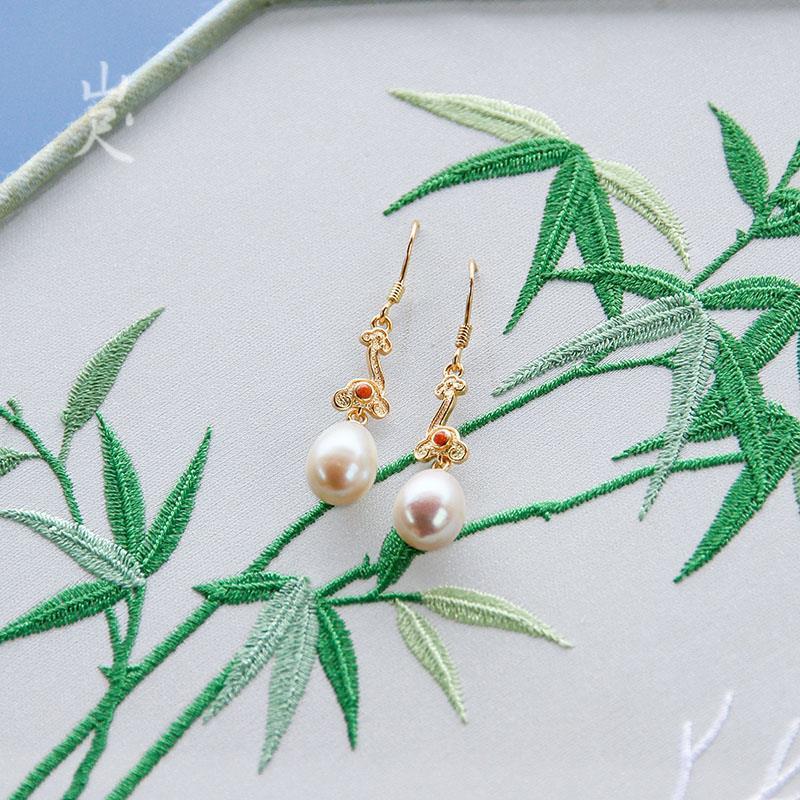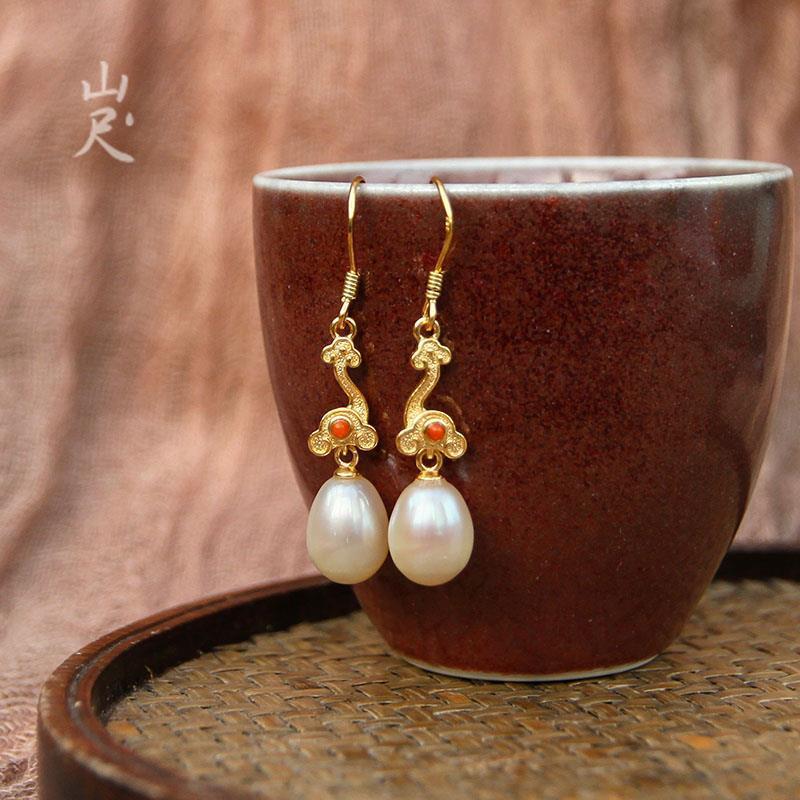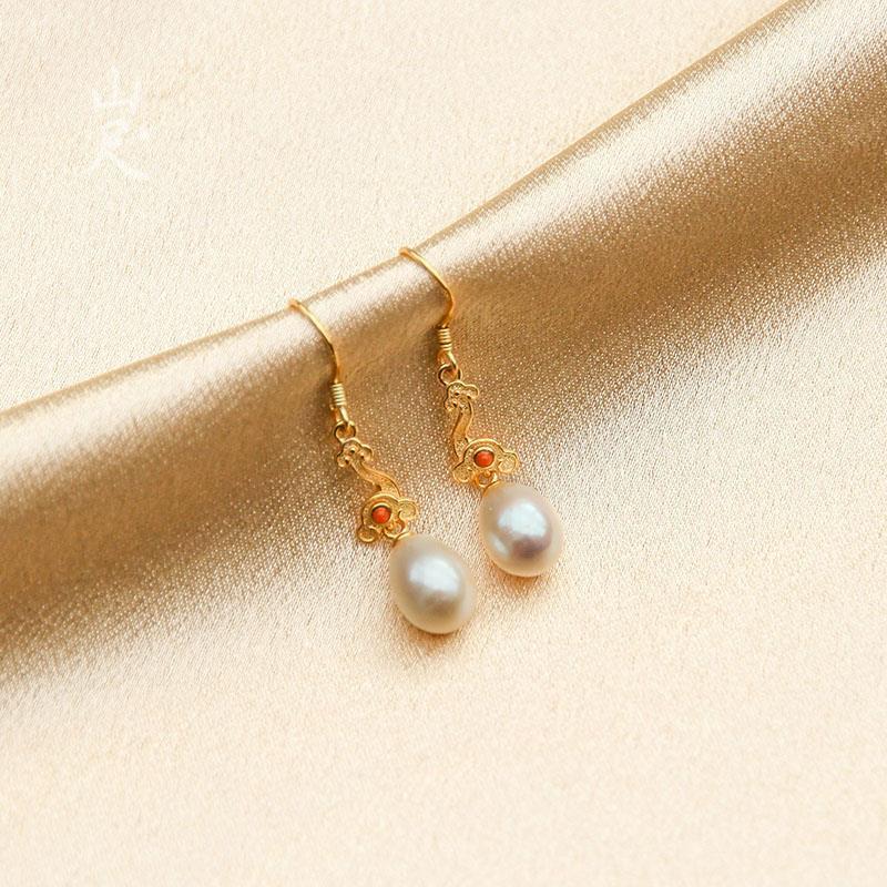 云珠丨天然珍珠中式耳环s925纯银耳坠华丽富贵古典大气宫廷风耳饰