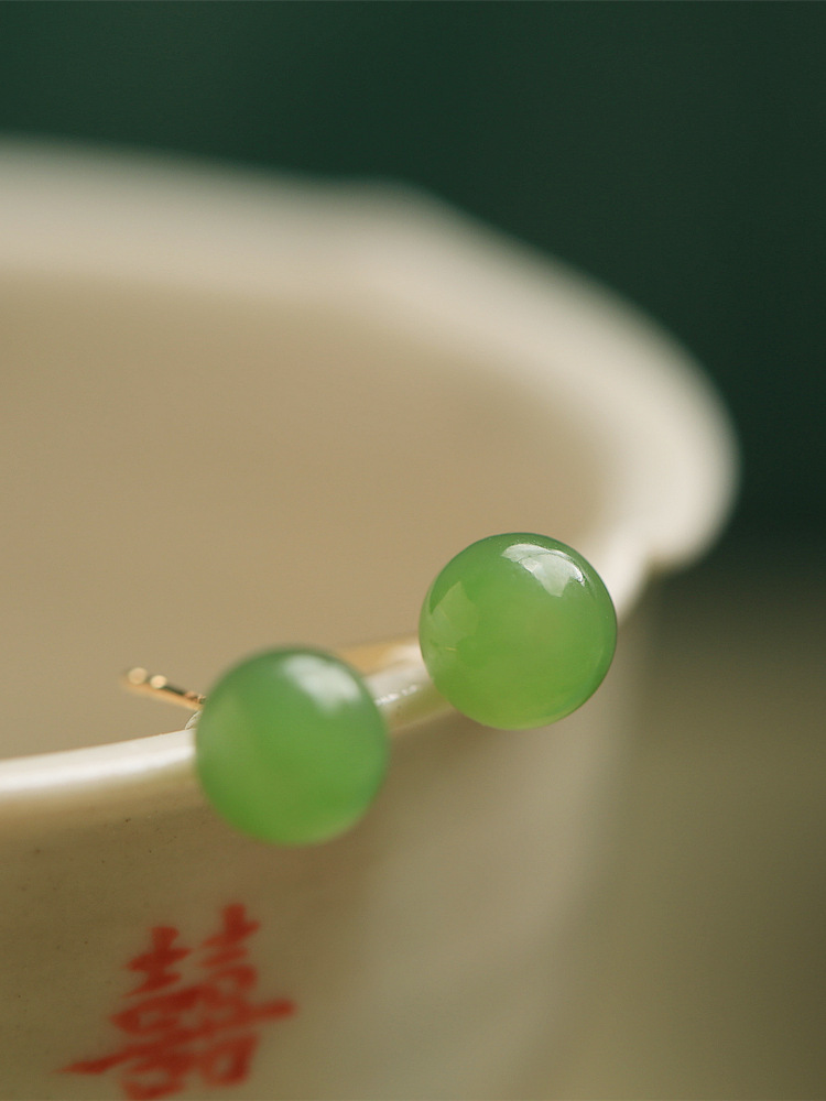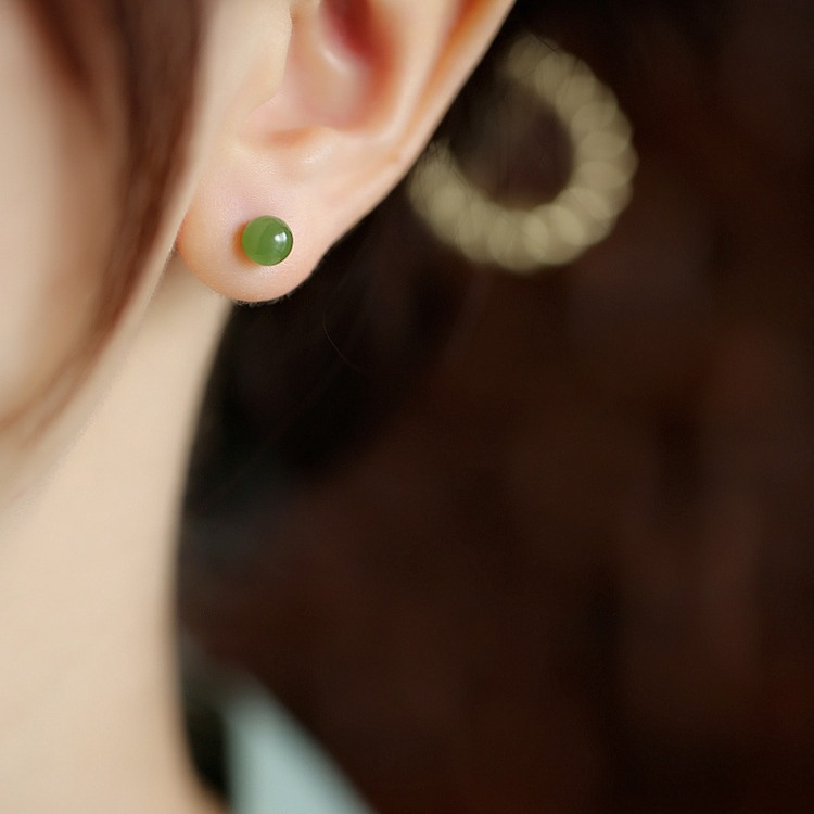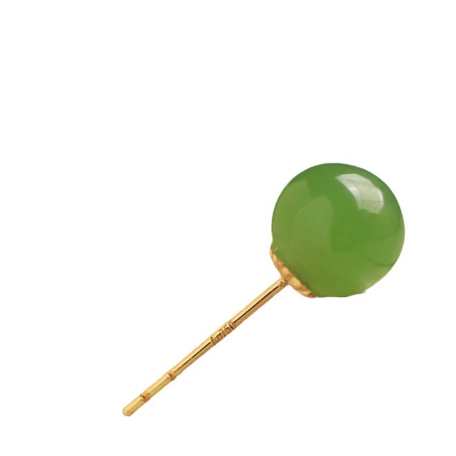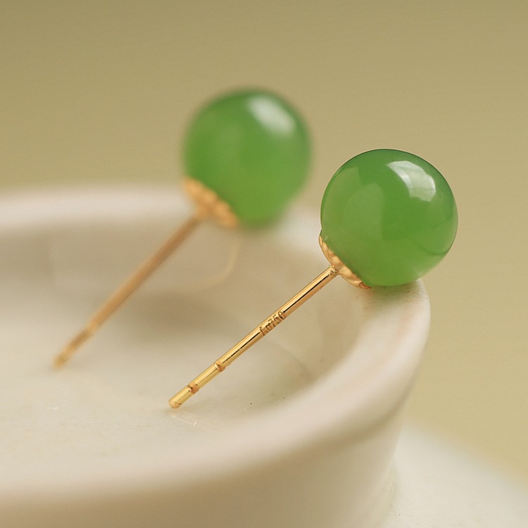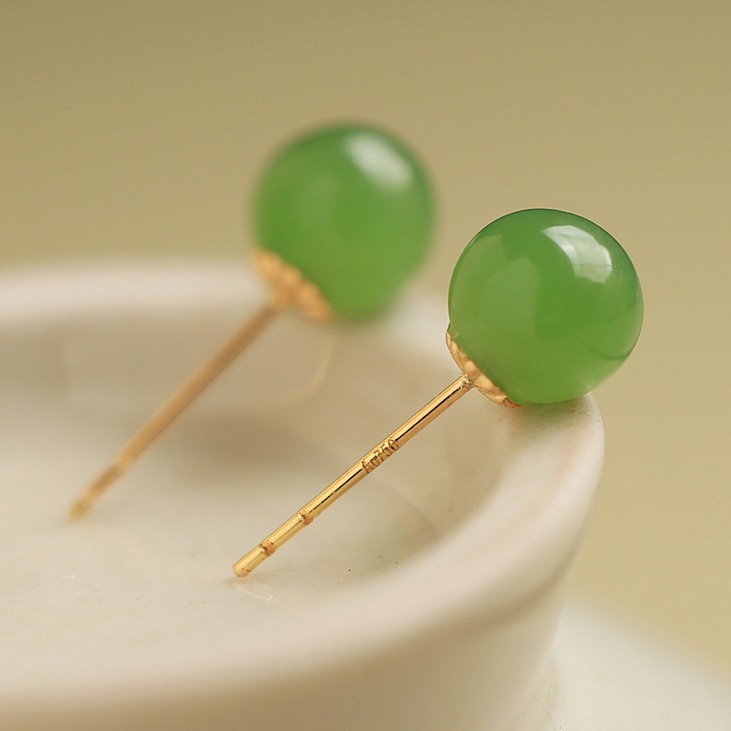 镀18k纯金耳钉女和田玉碧玉高级感气质轻奢新年玉石耳环耳饰