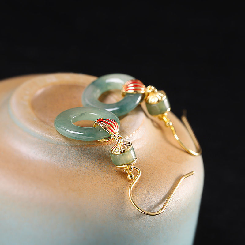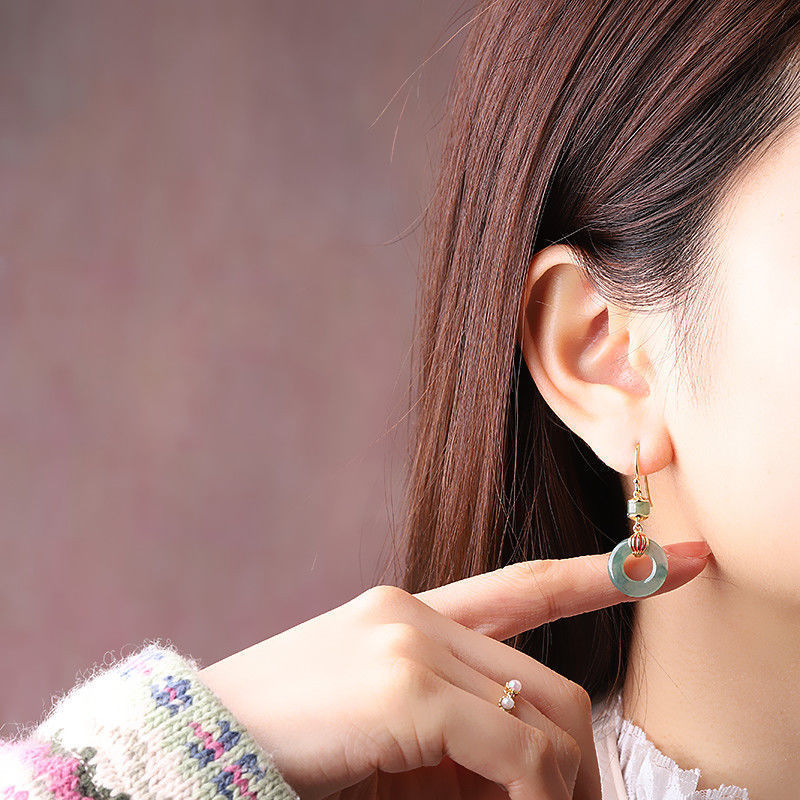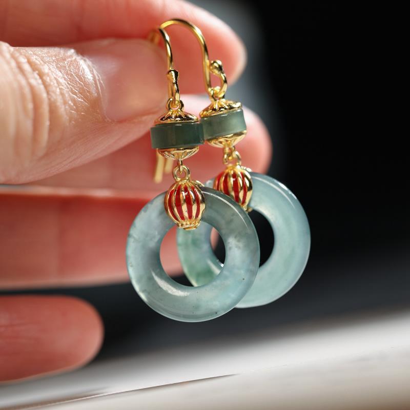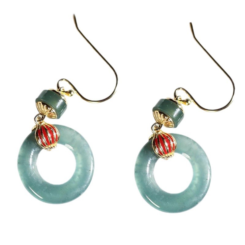 新款镀金饰品仿冰种翡翠民族风复古风耳环耳坠饰品