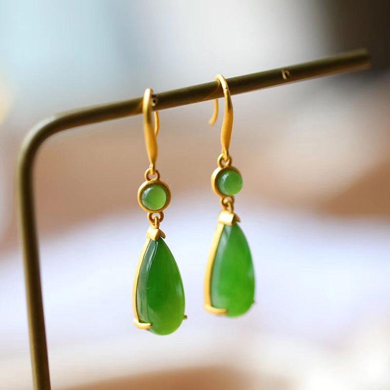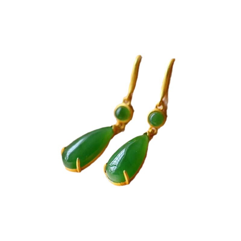 新款S925纯银镶嵌和田碧玉白玉耳饰经典款耳钩简约时尚情人节礼物