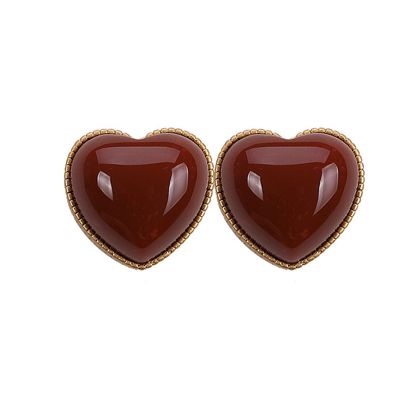 S925纯银镀金和田玉南红玛瑙个性简约气质女士时尚耳钉耳饰