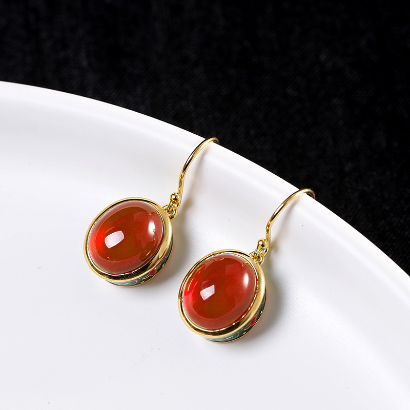 蛋面红刚玉耳镀925银针小清新百搭时尚民族风气质耳饰女款