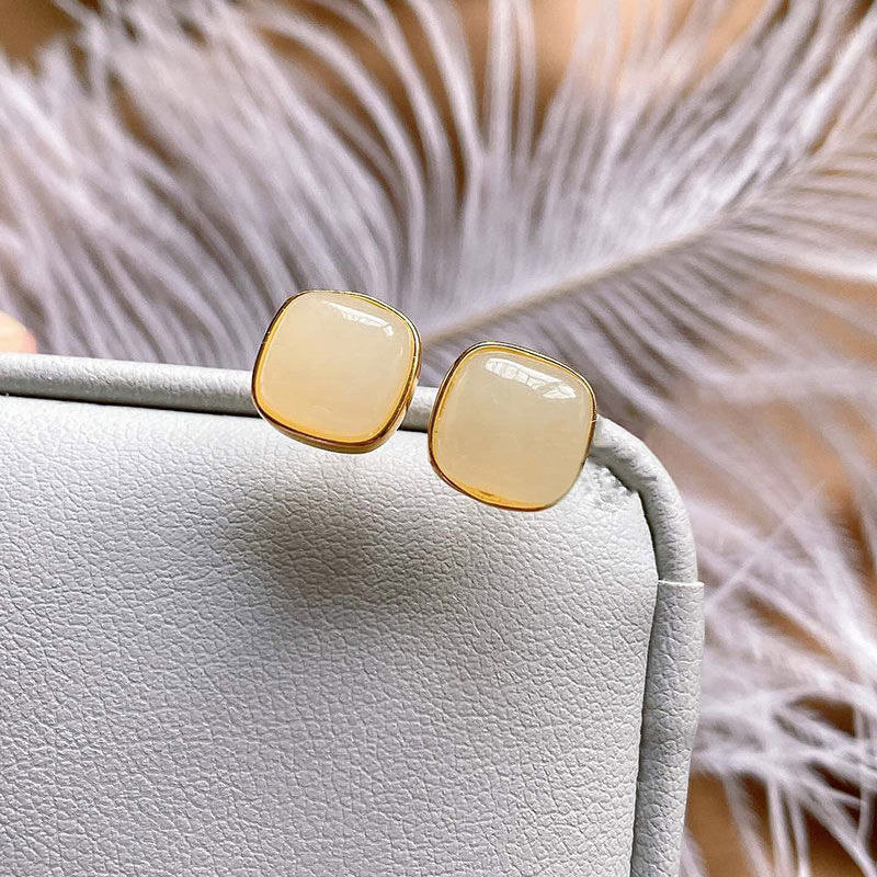 天然和田玉小方耳钉女小巧简约气质精致百搭耳环女纯银防过敏耳饰