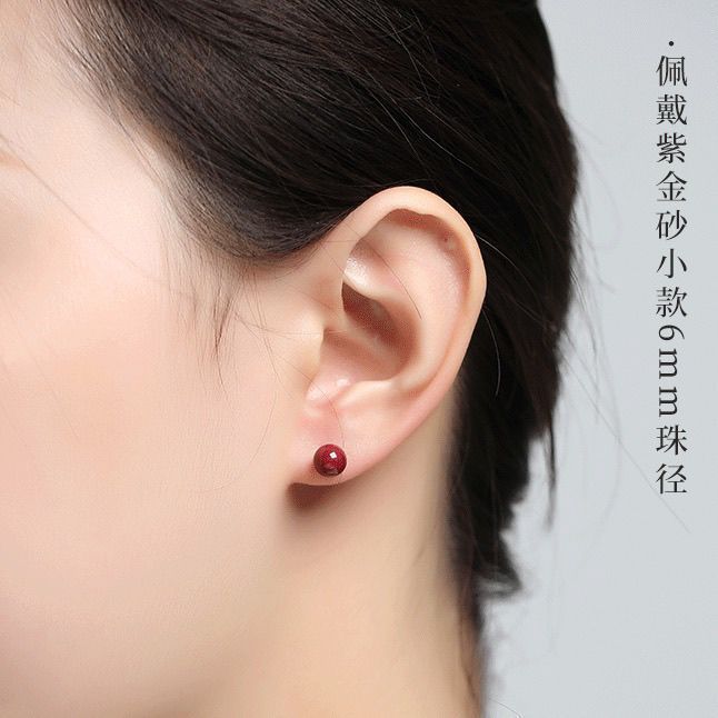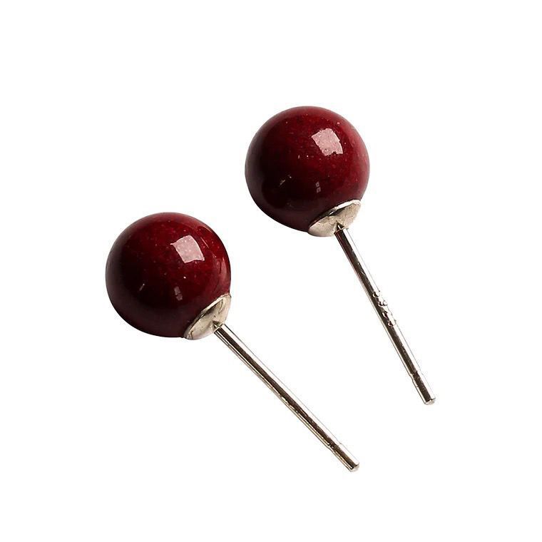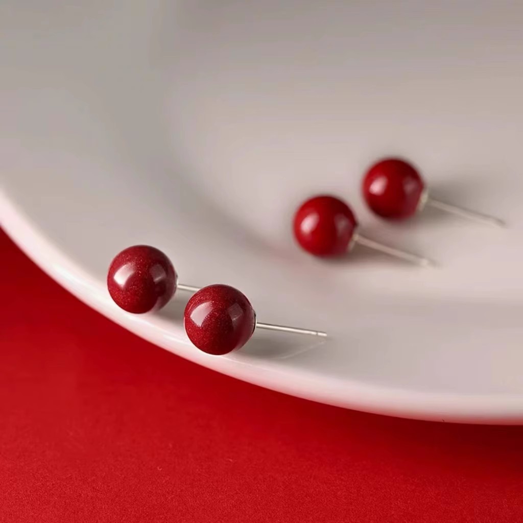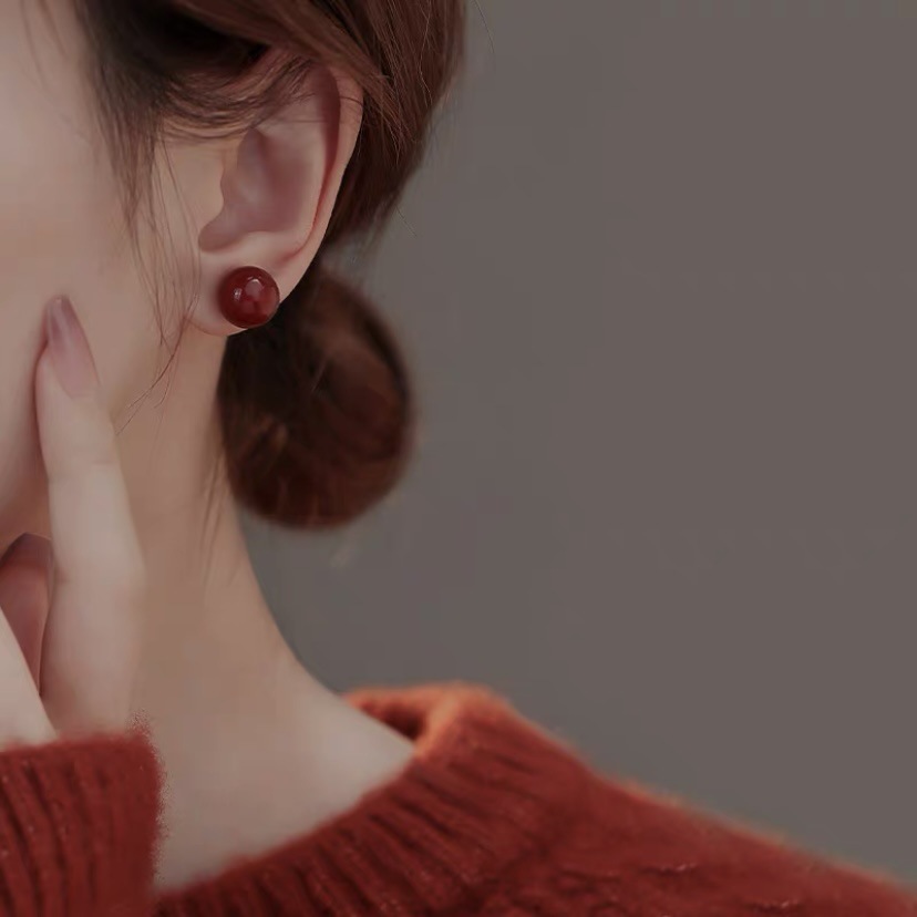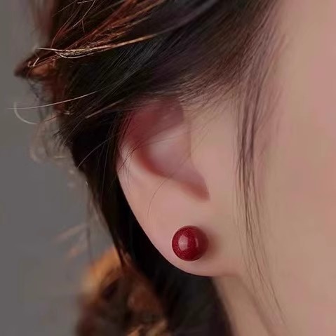 纯银天然朱砂耳钉耳环s925银本命年简约红色耳饰生日礼物喜庆送礼