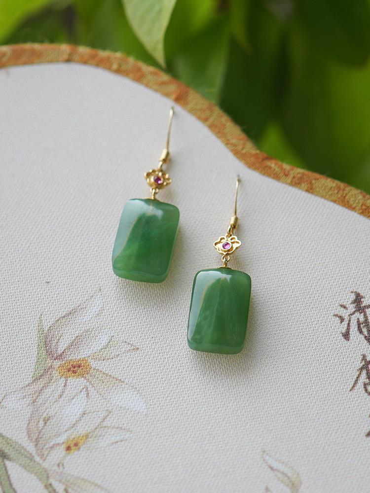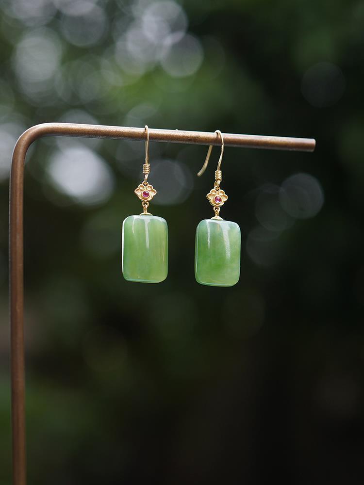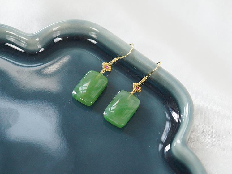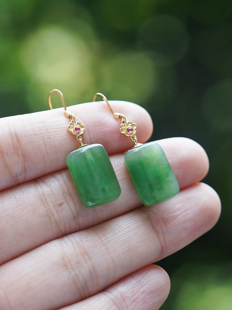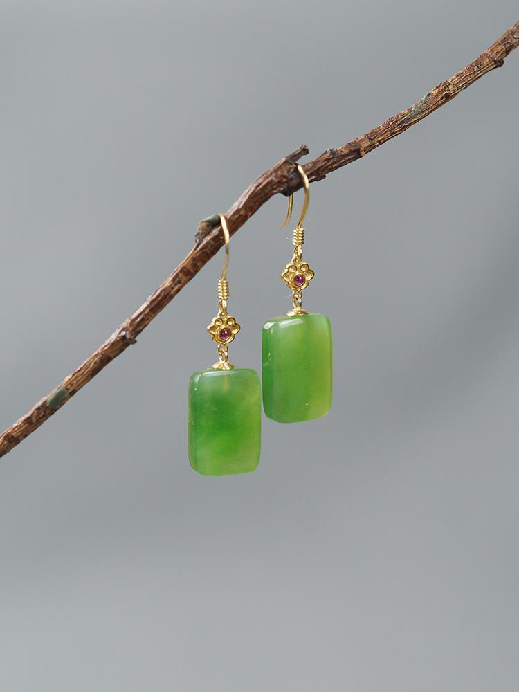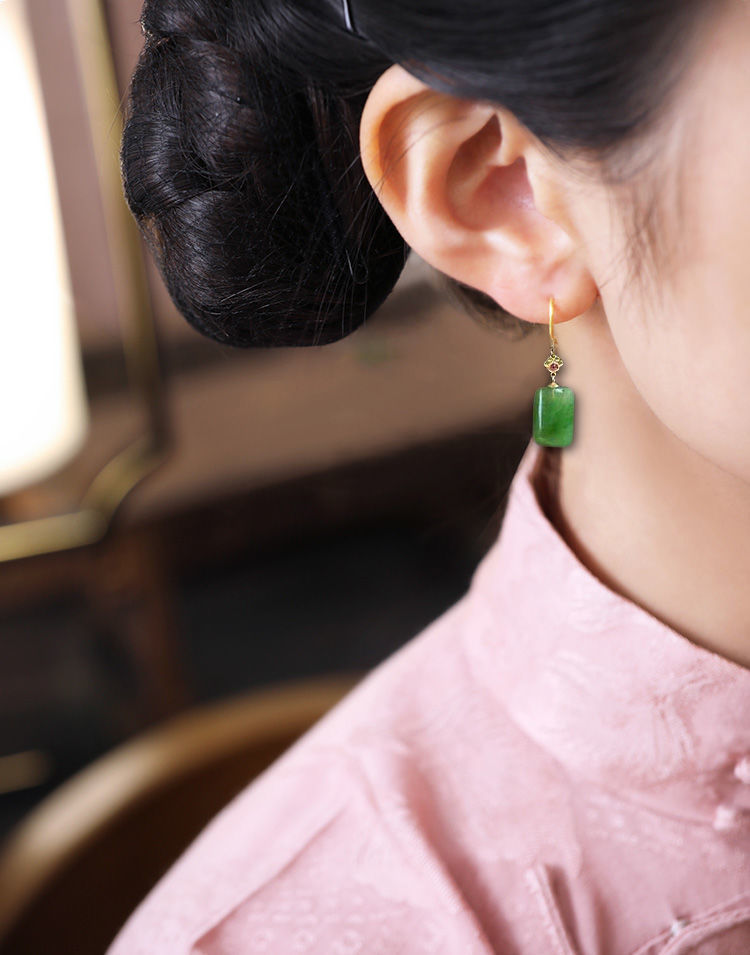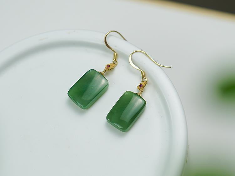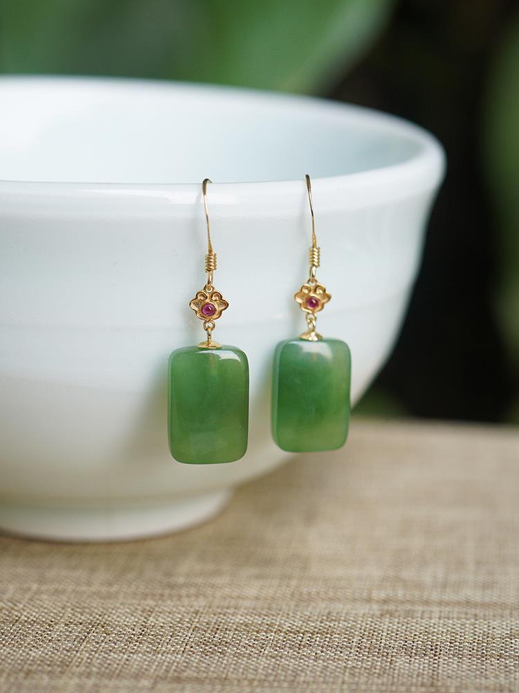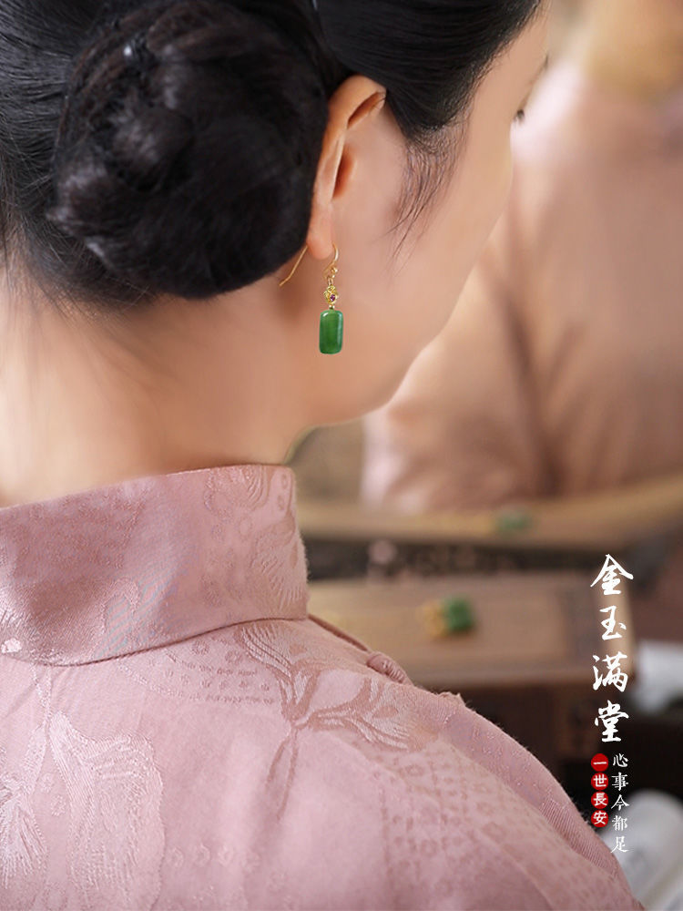 新款金玉满堂中国民族风和田玉耳坠女耳钩旗袍汉服镀金耳环气质