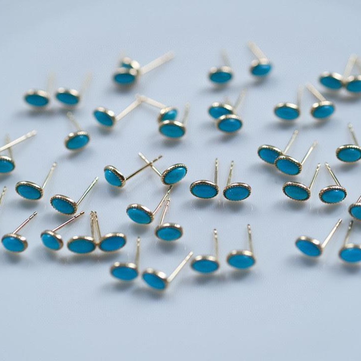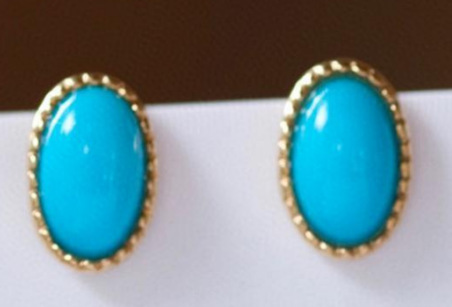 925银镀金绿松石椭圆宫廷风中国风气质复古小众长款女士耳钉