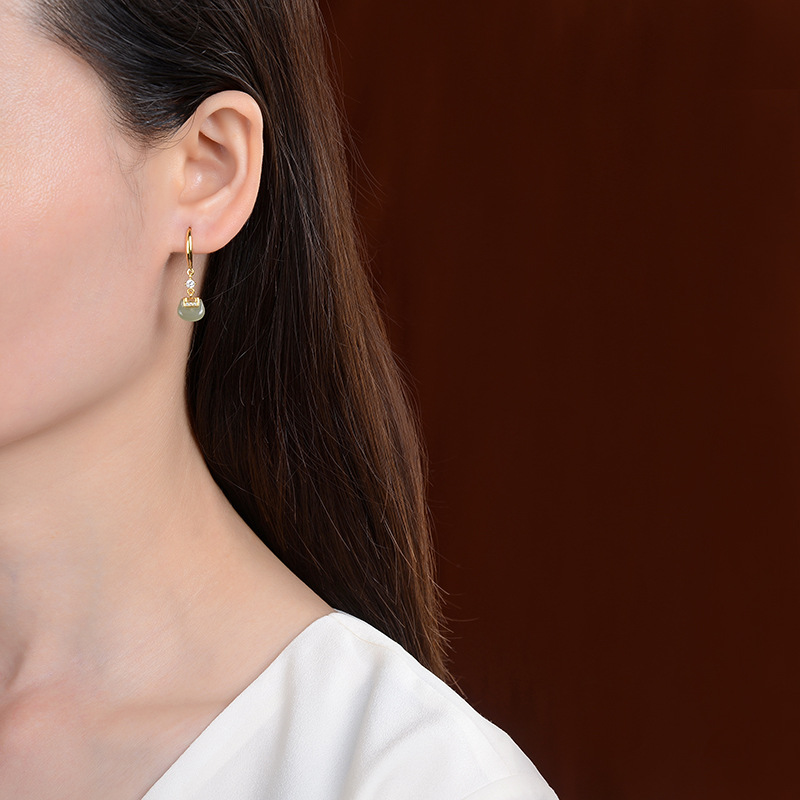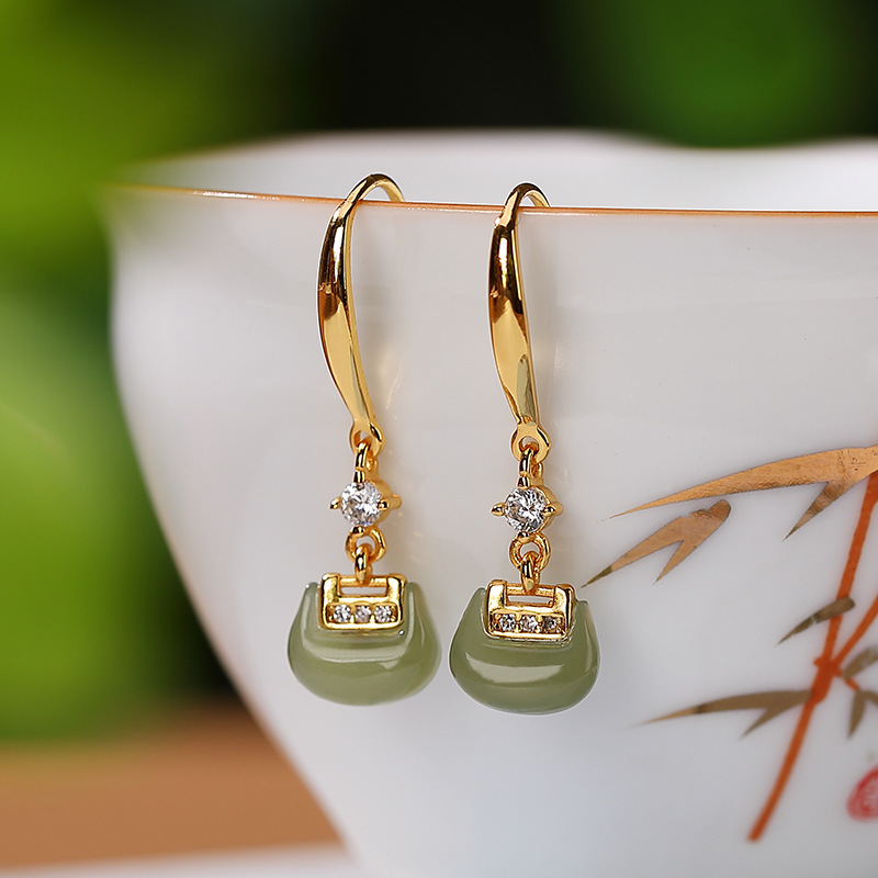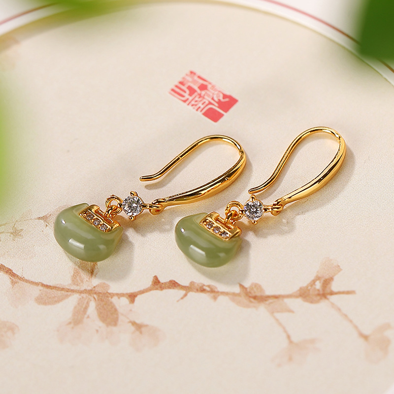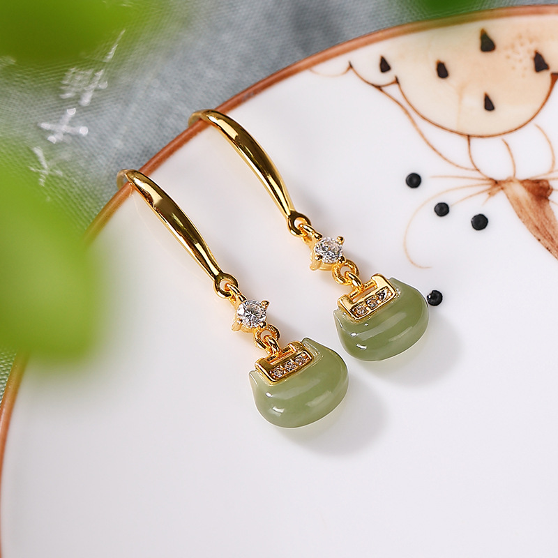 S925纯银耳环天然和田青玉耳坠上档次复古如意女气质耳饰高级感