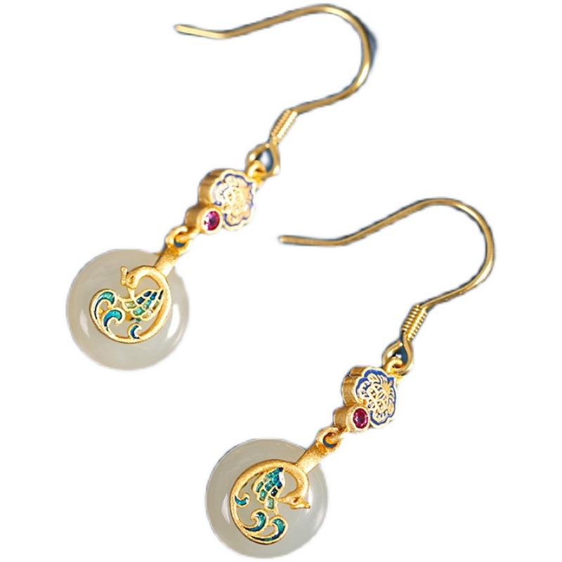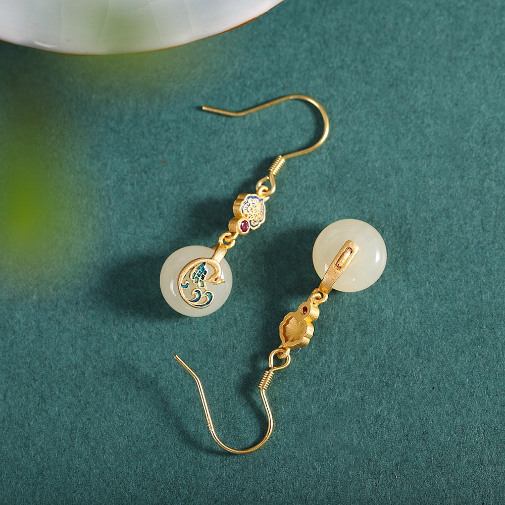 中式耳坠中国复古风和田耳环宋代复古耳钉旗袍流苏耳饰
