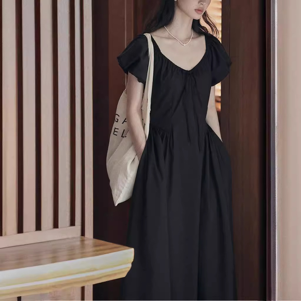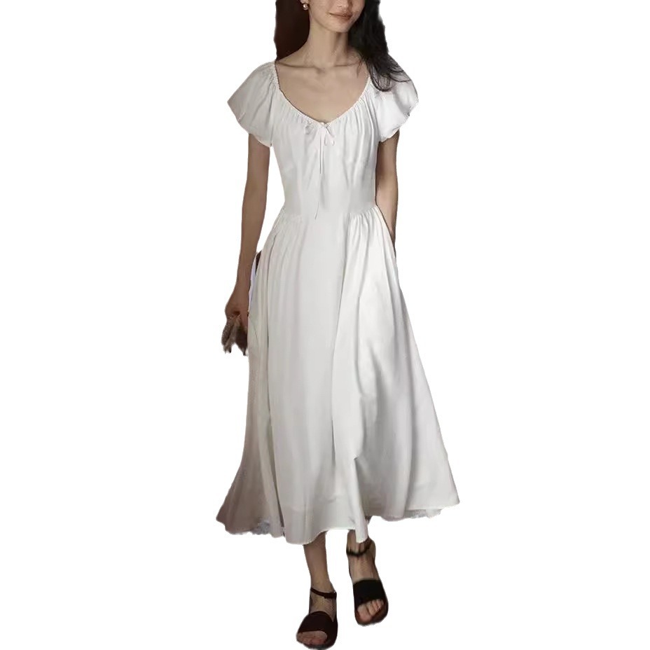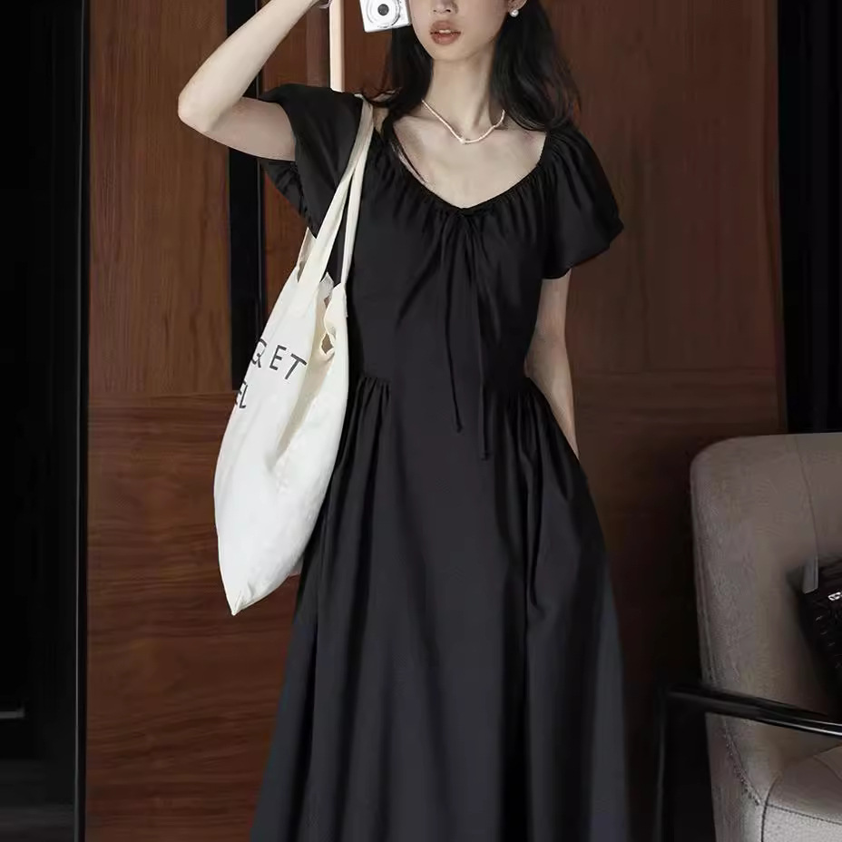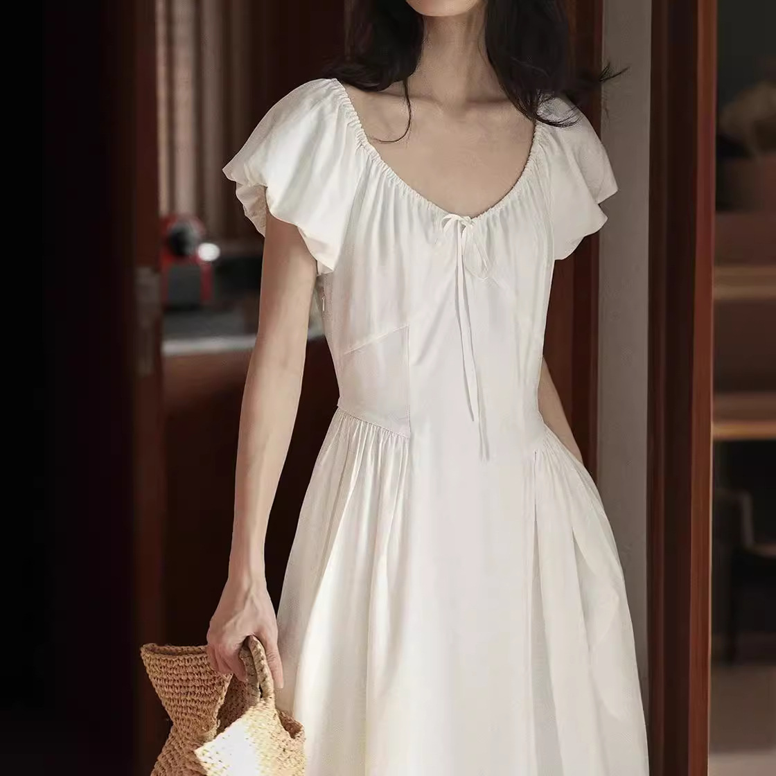 逛画廊的女孩抗皱法式泡泡袖v领连衣裙显瘦仙女裙子
