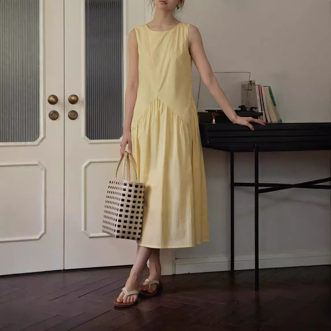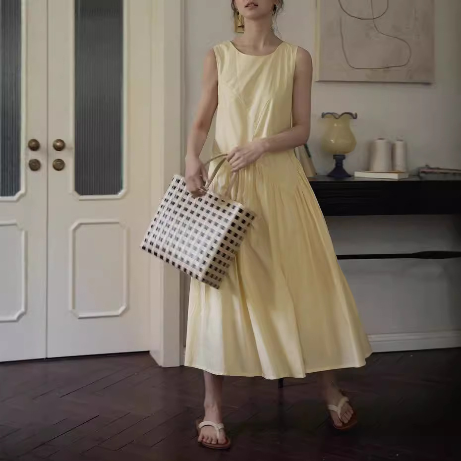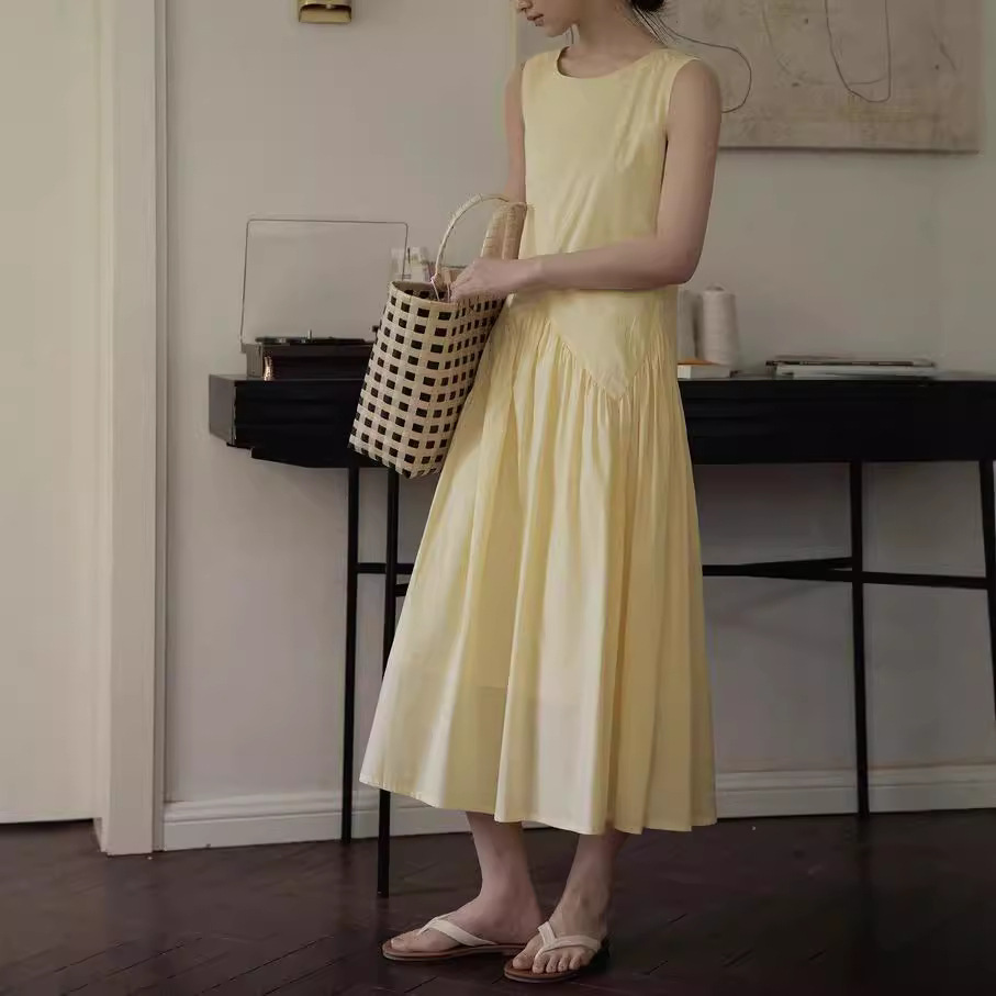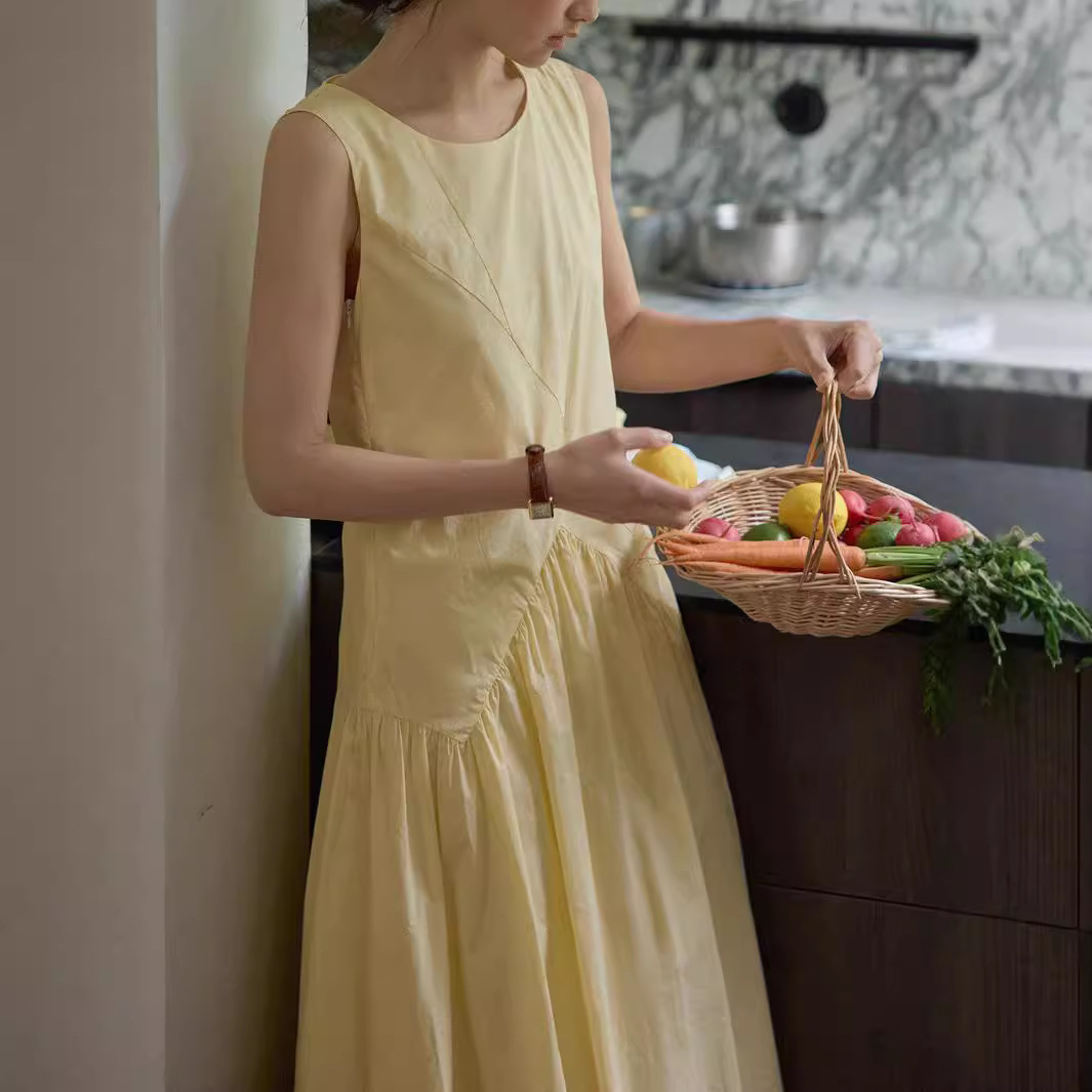 2025SS 60s高支棉不规则分割无袖伞摆解构式背心连衣裙