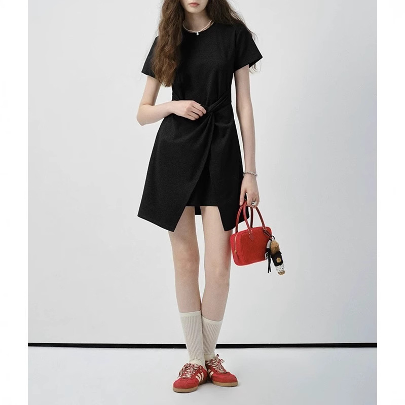 VEGA 小个子连衣裙2025年夏装新款不规则裙摆显瘦t恤短裙子