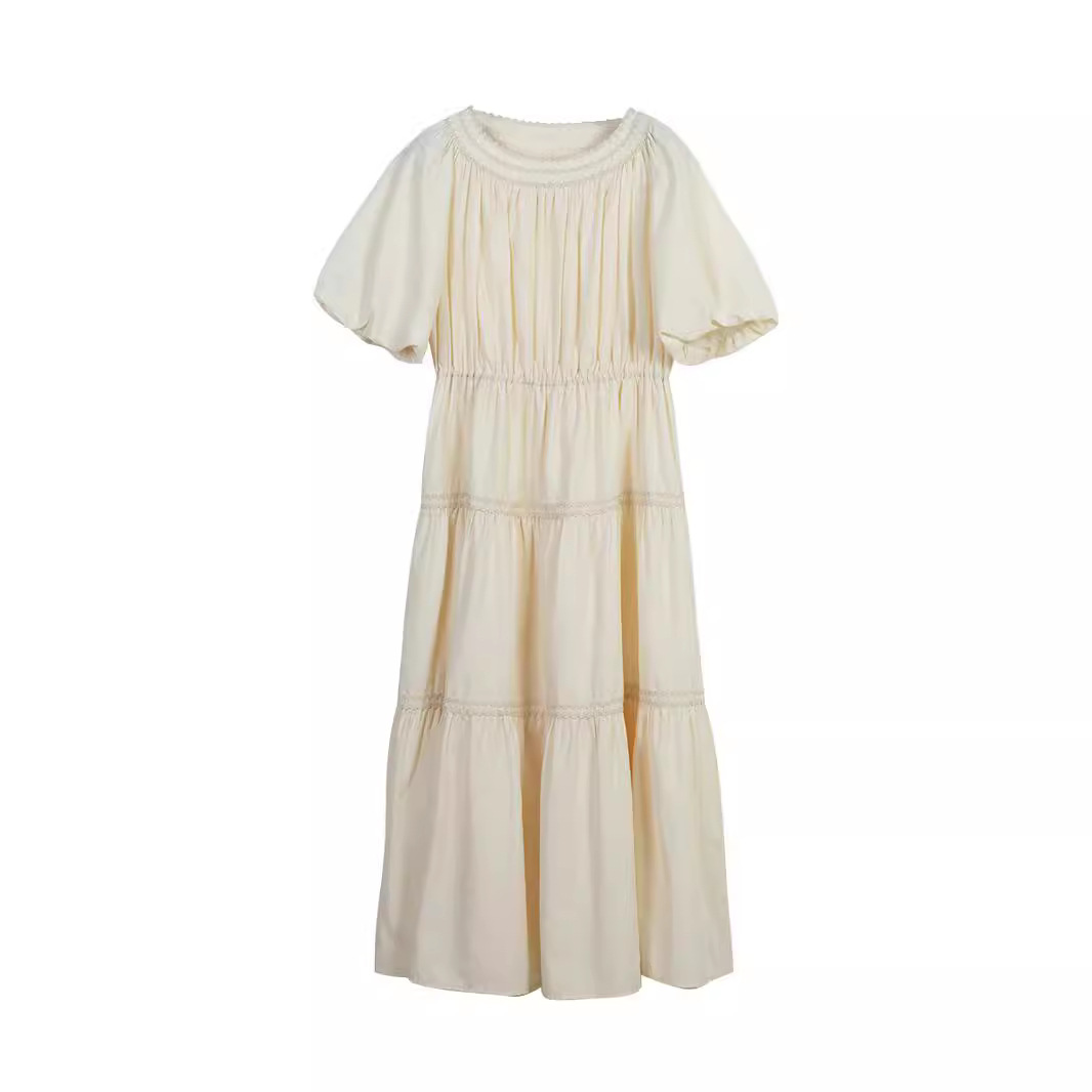 法式花边大摆裙短袖连衣裙设计感高腰显瘦气质裙子