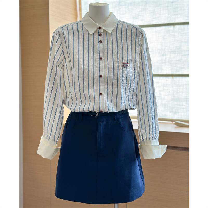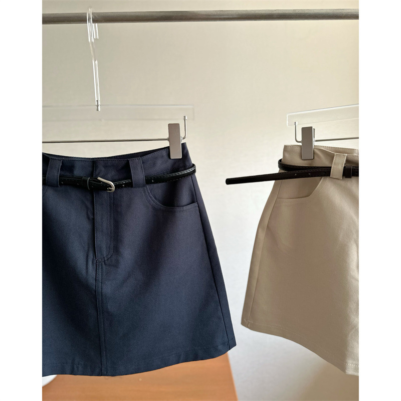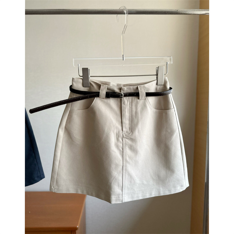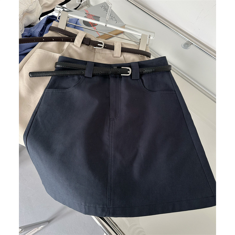 韩版简约百搭高腰美式显瘦半身裙女小个子配腰带
