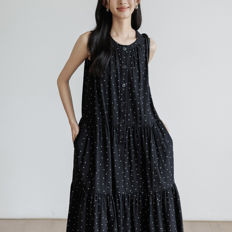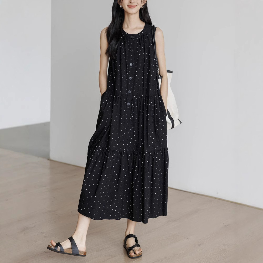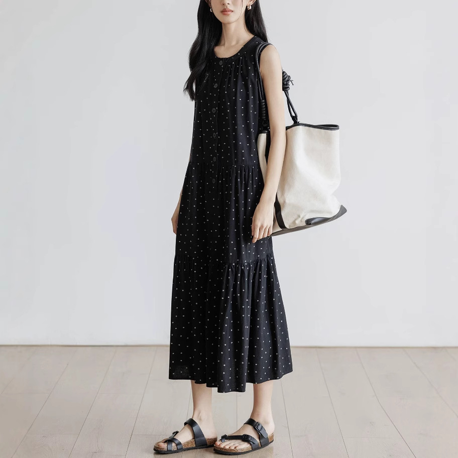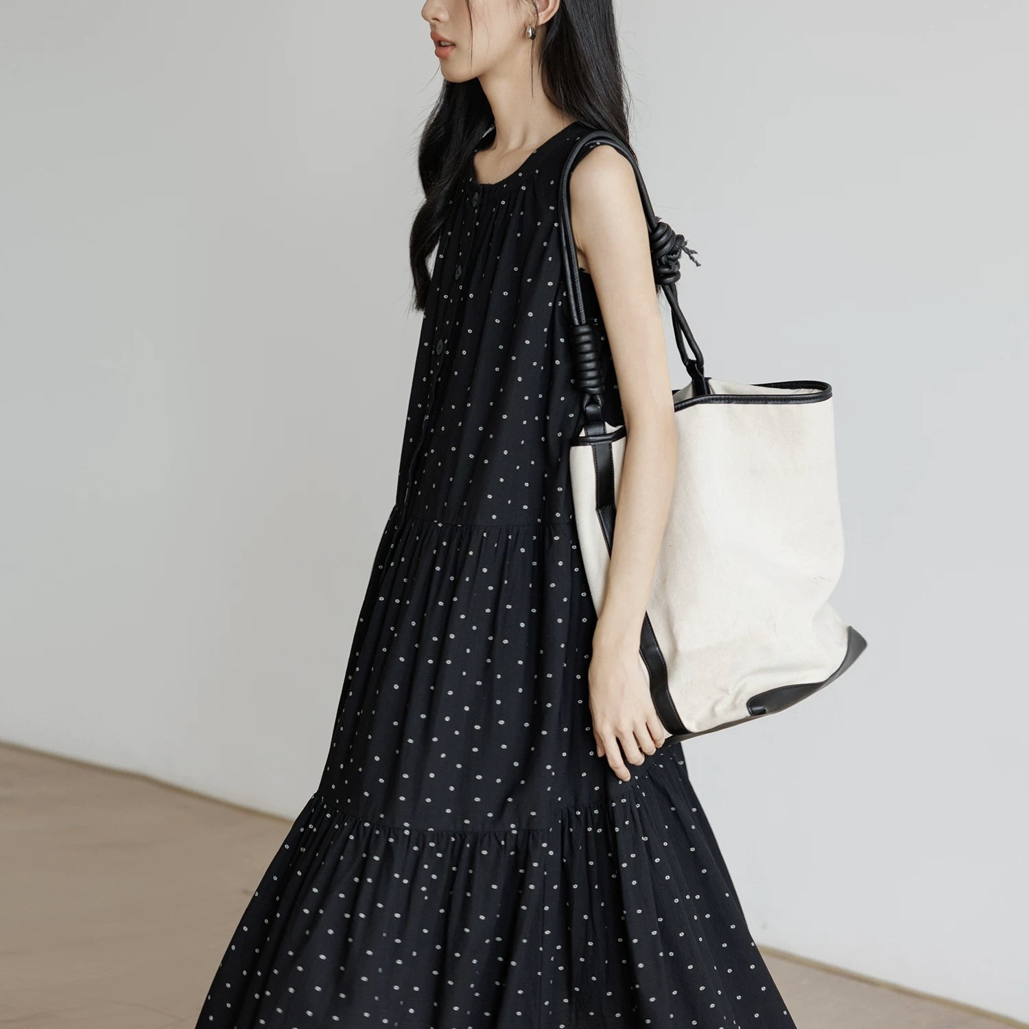 法式连衣裙女夏季2025新款无袖碎花宽松背心裙度假风桔梗长裙裙子