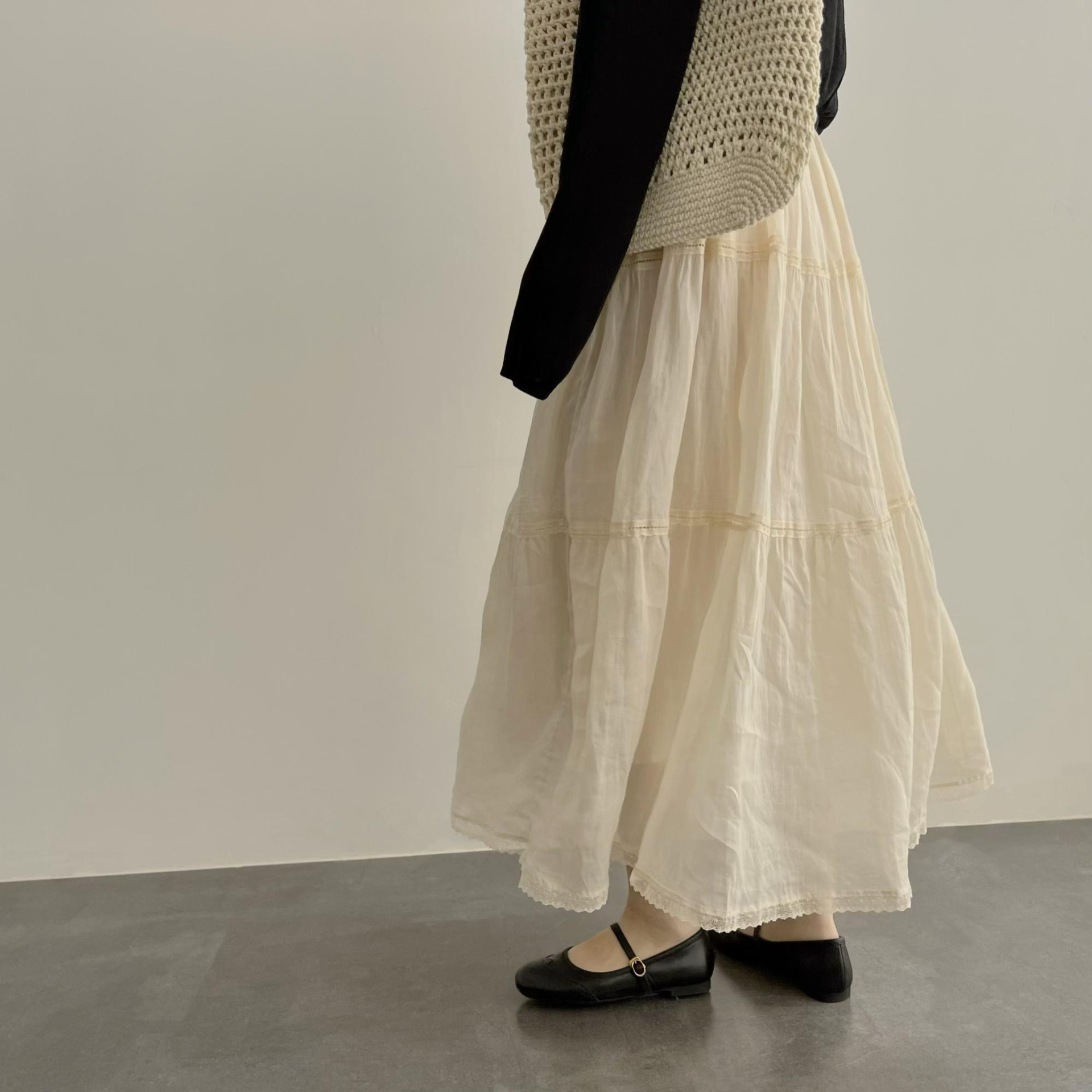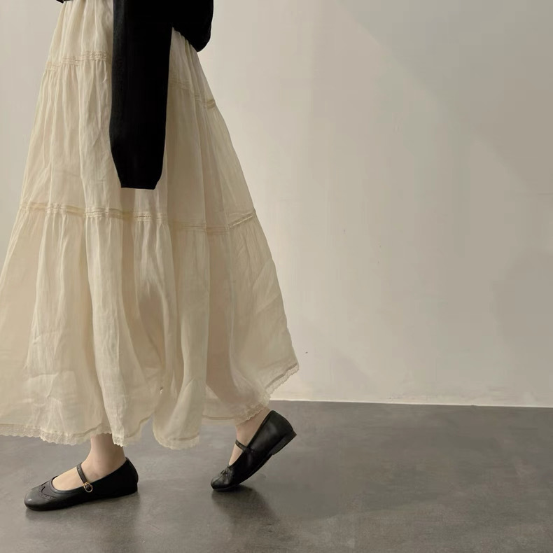 温柔的杏白。自制天然酵洗重工A字中长款半身裙蛋糕裙白
