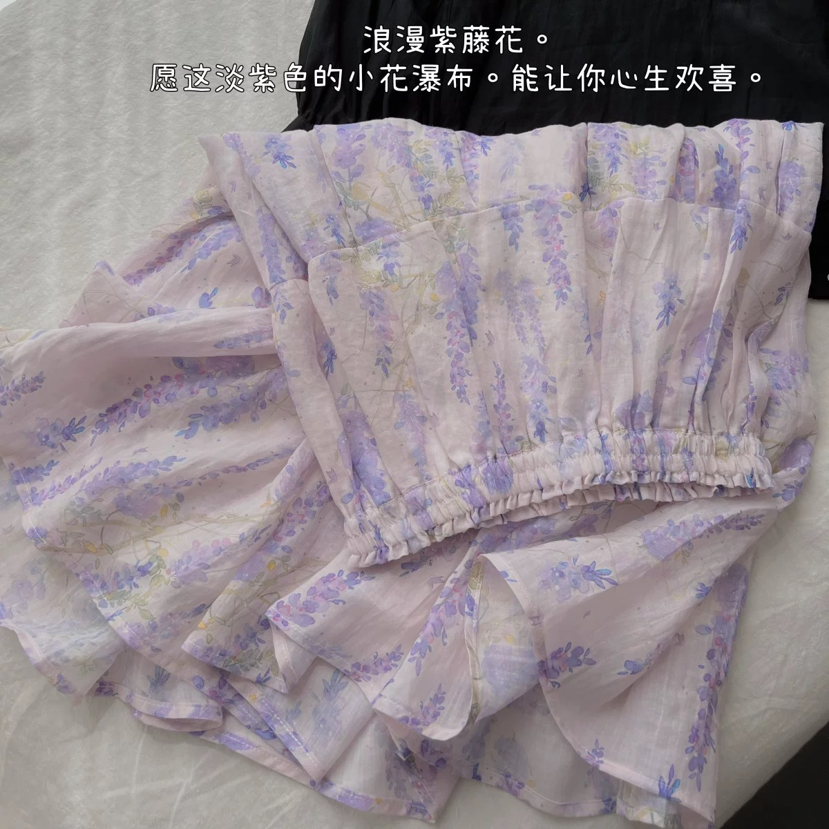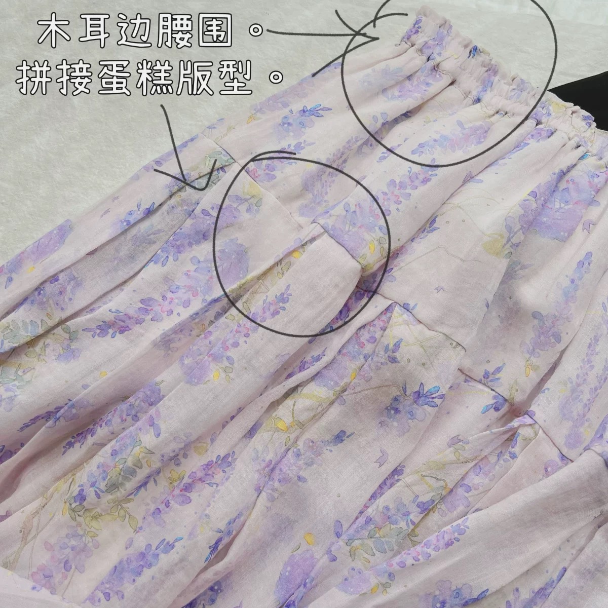 紫藤花 加捻精纺细纱天然苎麻半身裙中长款A字蛋糕仙女裙