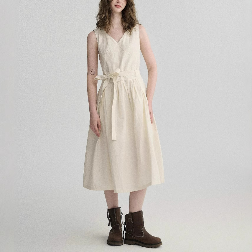 郊野时光' 法式设计感v领透气系带收腰口袋连衣裙