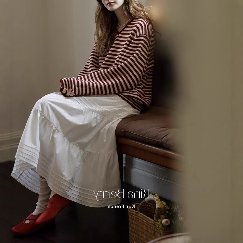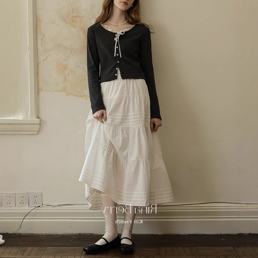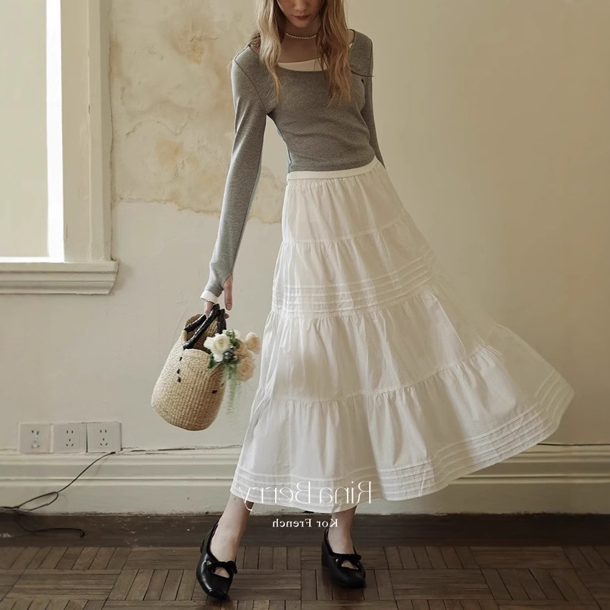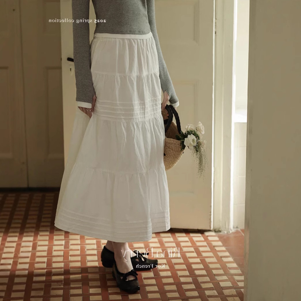 拼接宽松长裙设计感法式温柔早春百搭小个子半身裙
