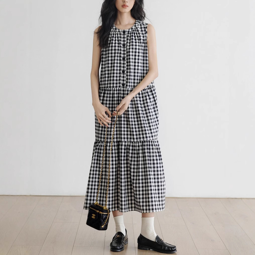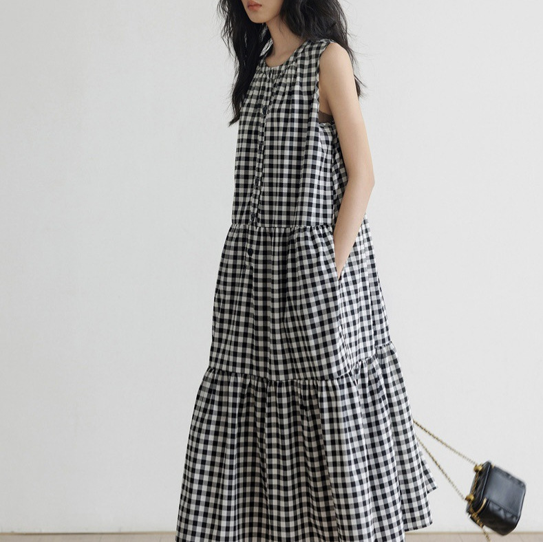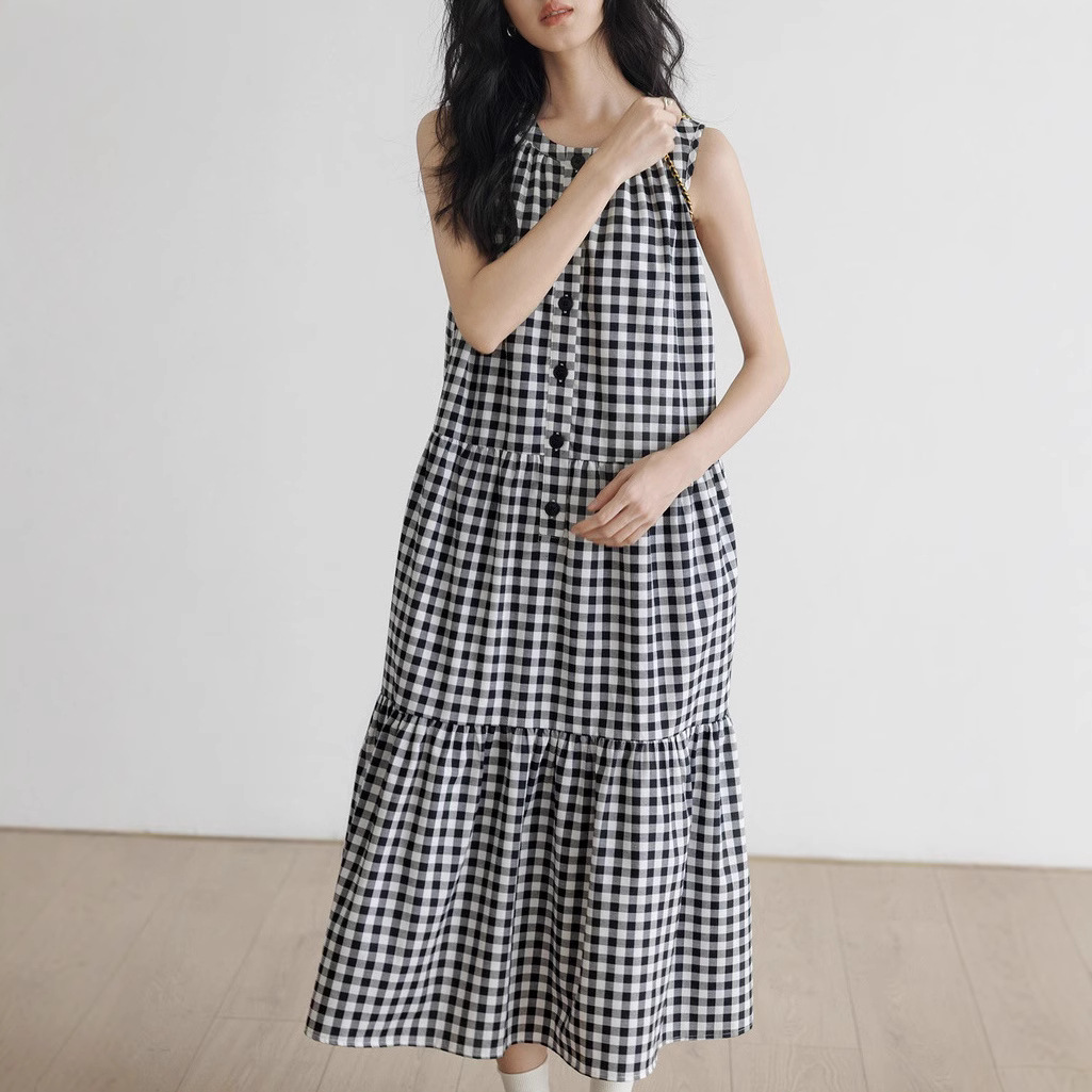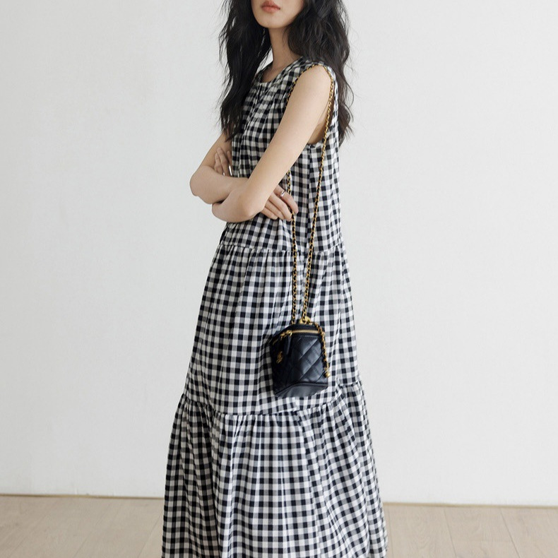 夏季格子背心连衣裙女2025新款无袖休闲设计感小众时尚a字长裙