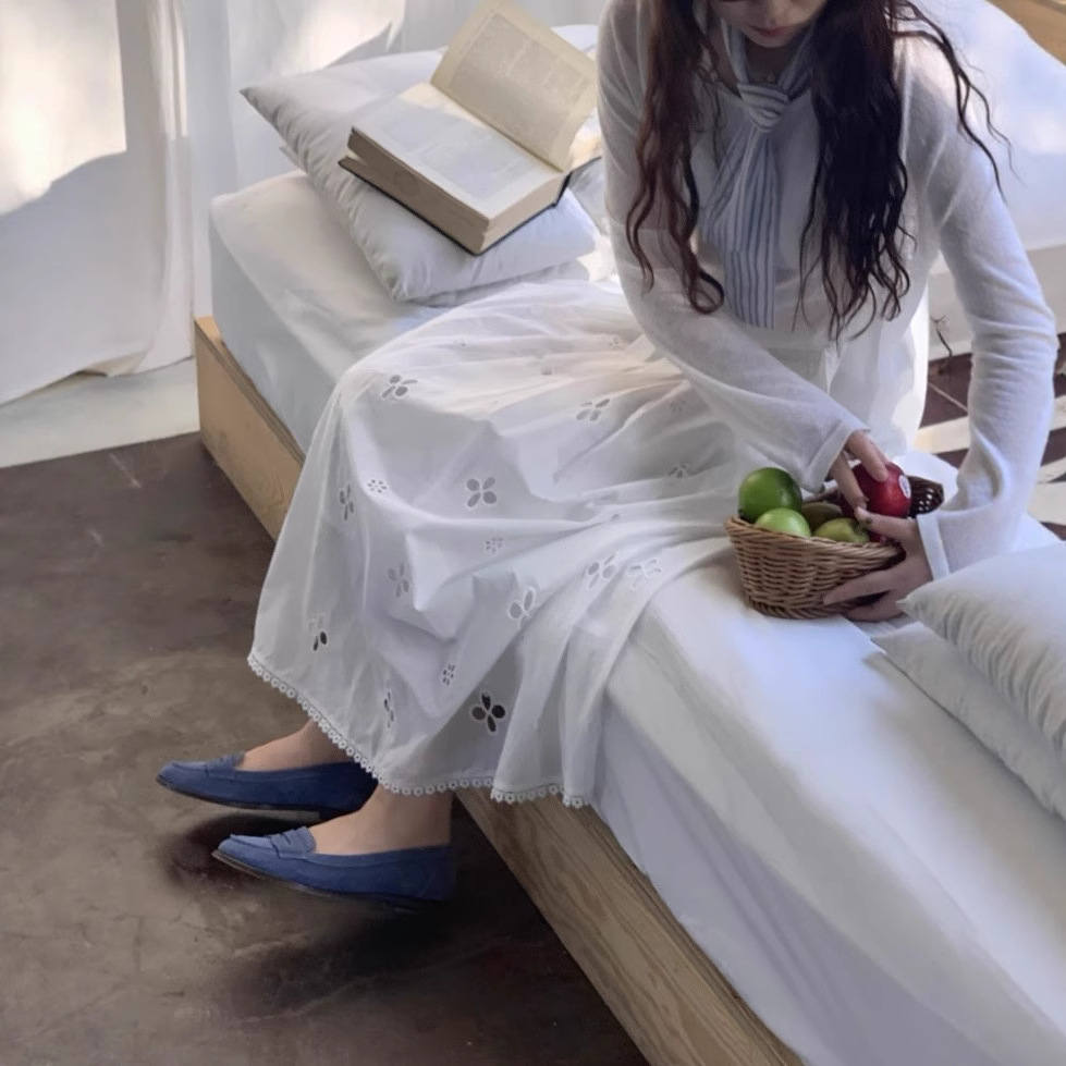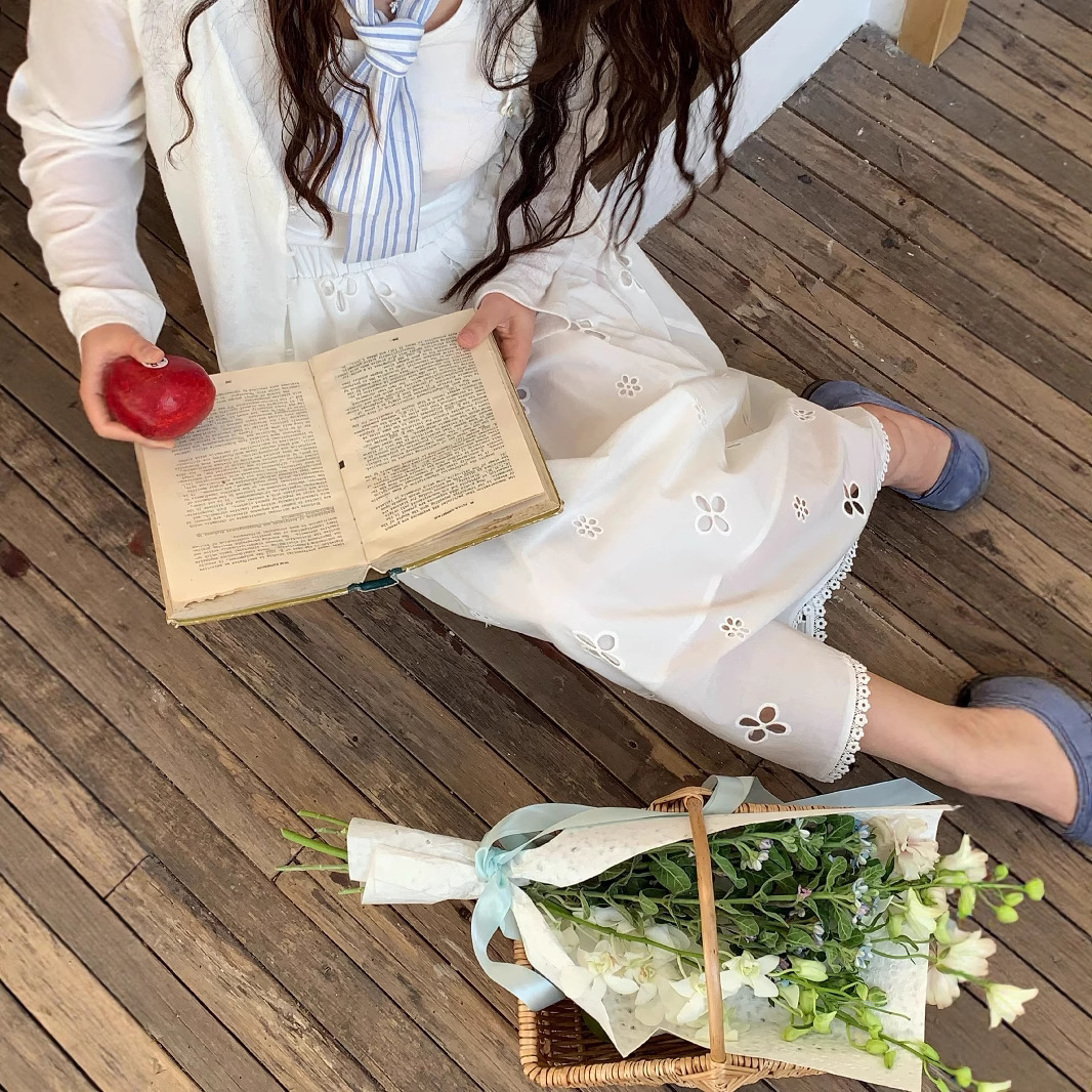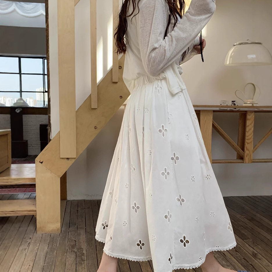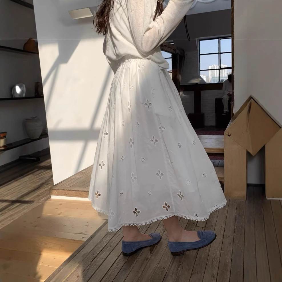 「布蕾花园」春夏透气感蓬蓬镂空花朵伞裙 白色半身裙