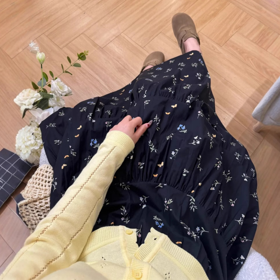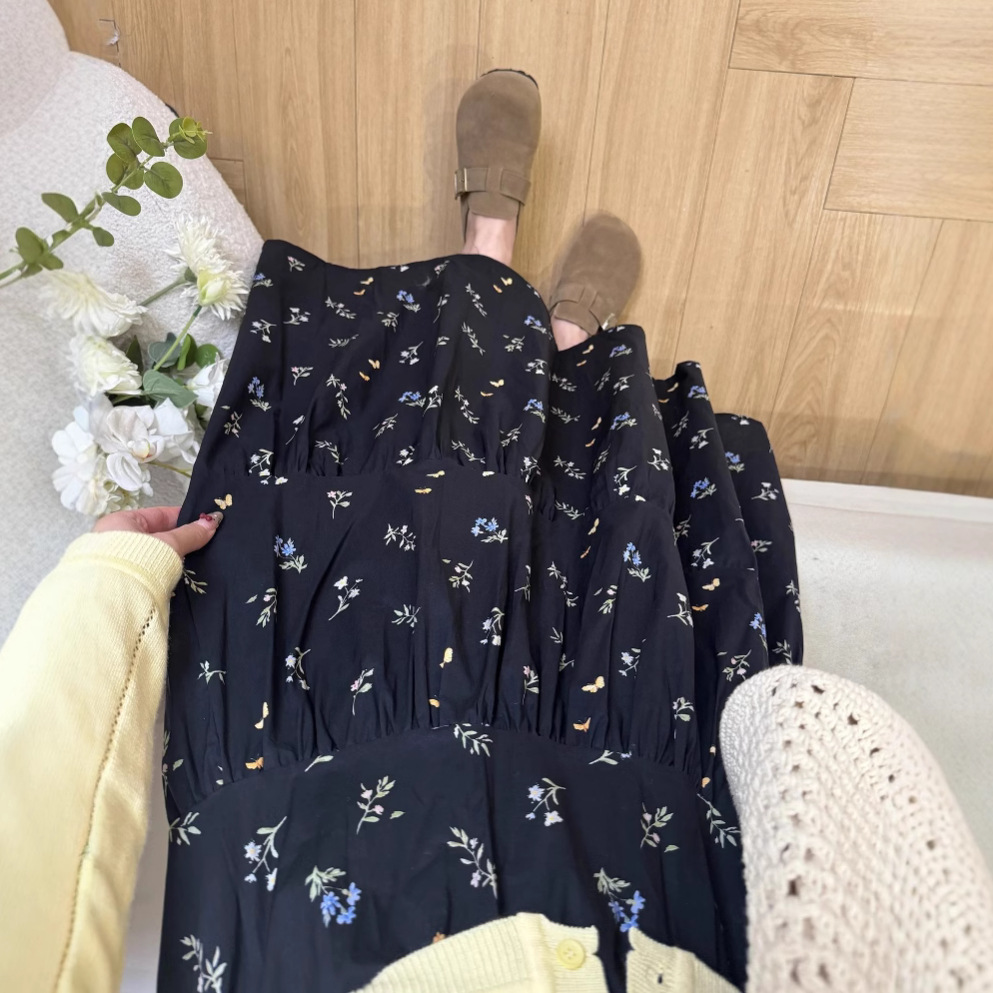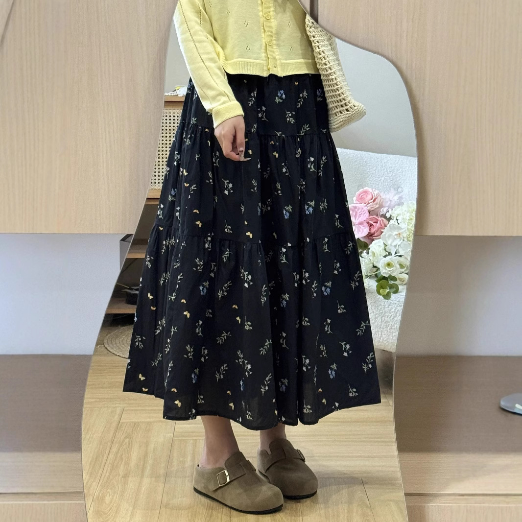 小清新碎花松紧腰半身裙女温柔甜美宽松显瘦A字半身裙