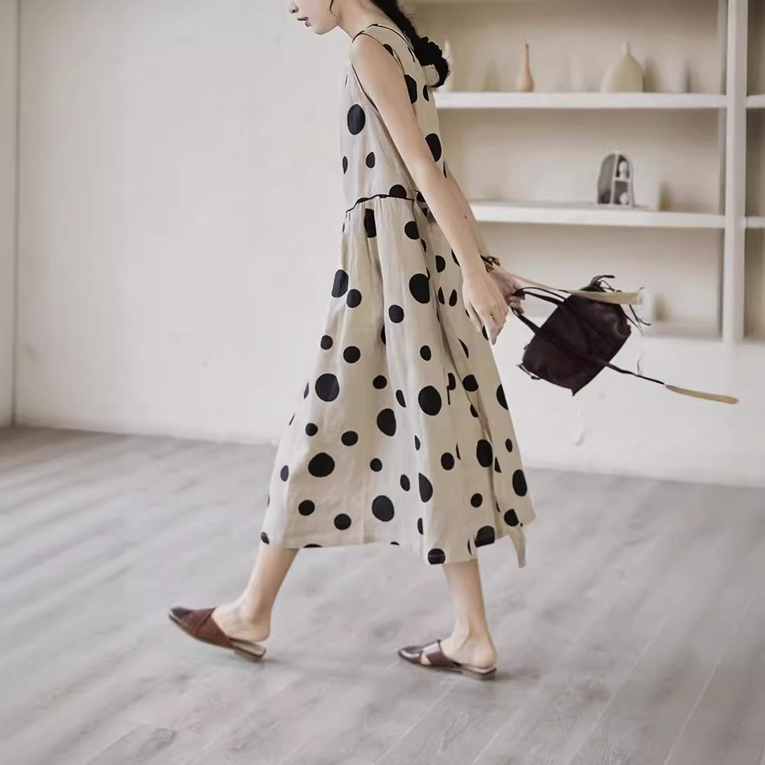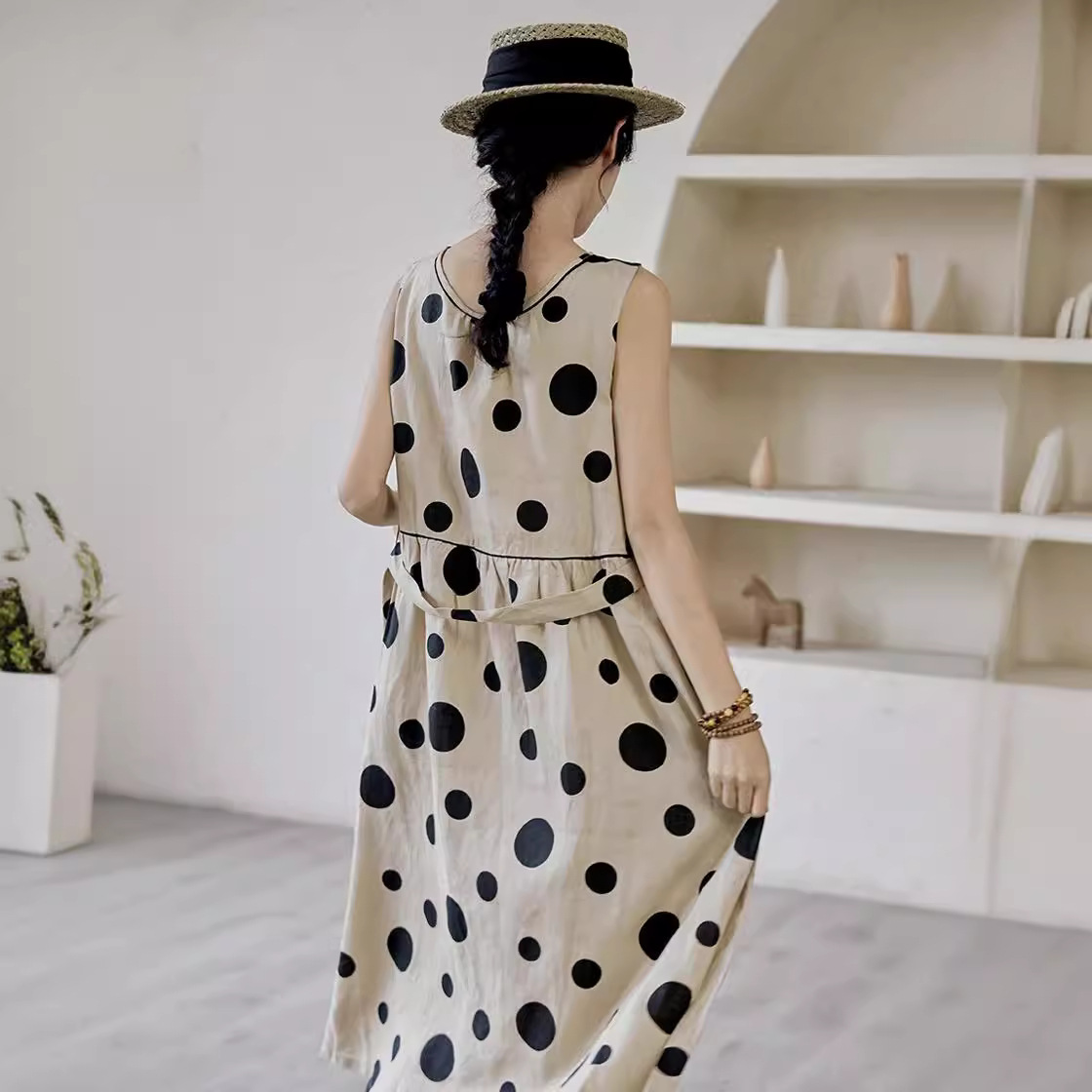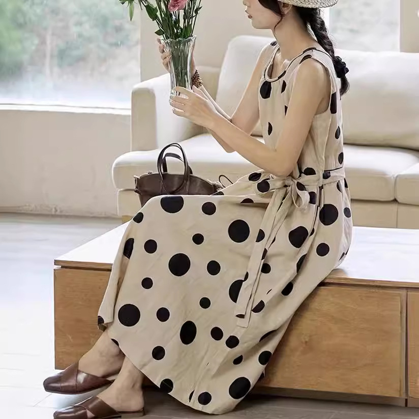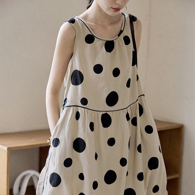 可然自牧 背心连衣裙无袖波点长裙子春夏新款女装