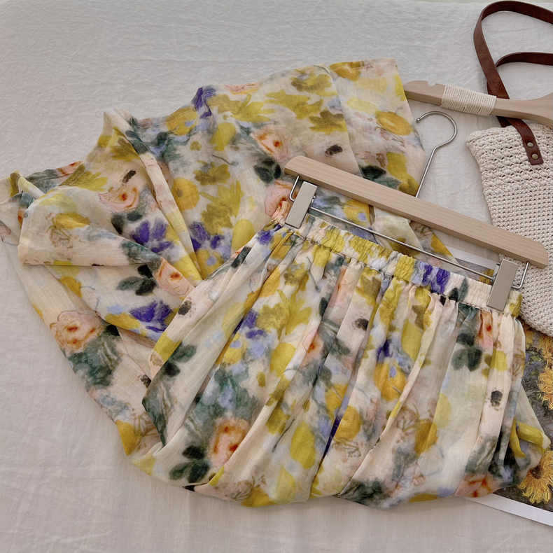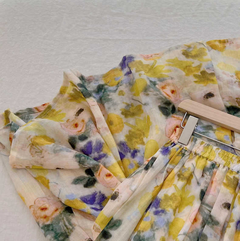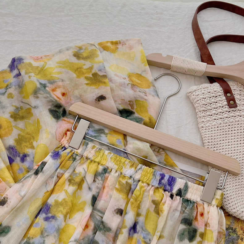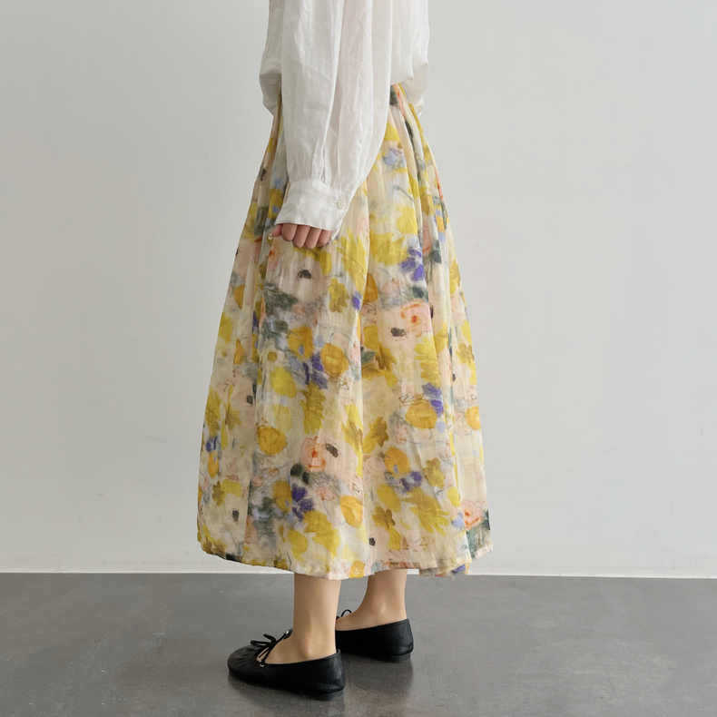 游园惊梦 高支苎麻滤镜油画晕染风A字中长款半身裙春