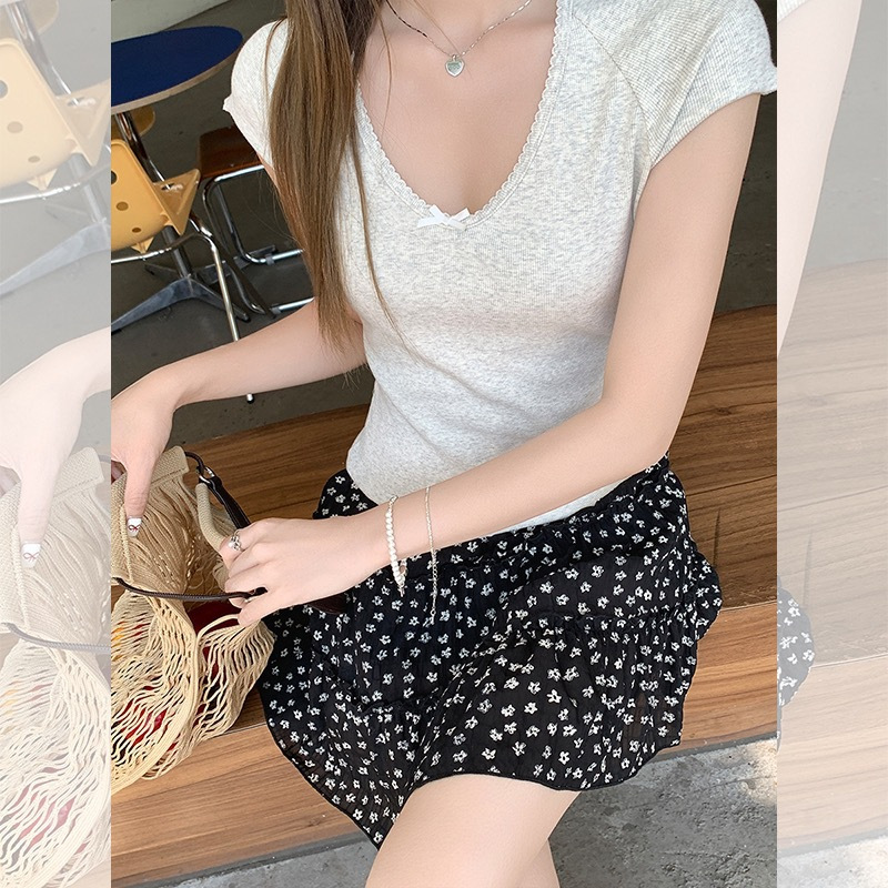 韩系黑色碎花半身裙女夏季2025新款高腰甜美百搭a字短裙