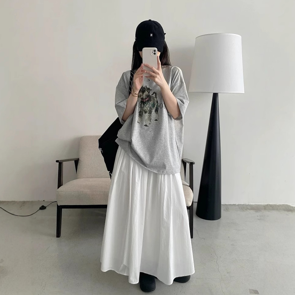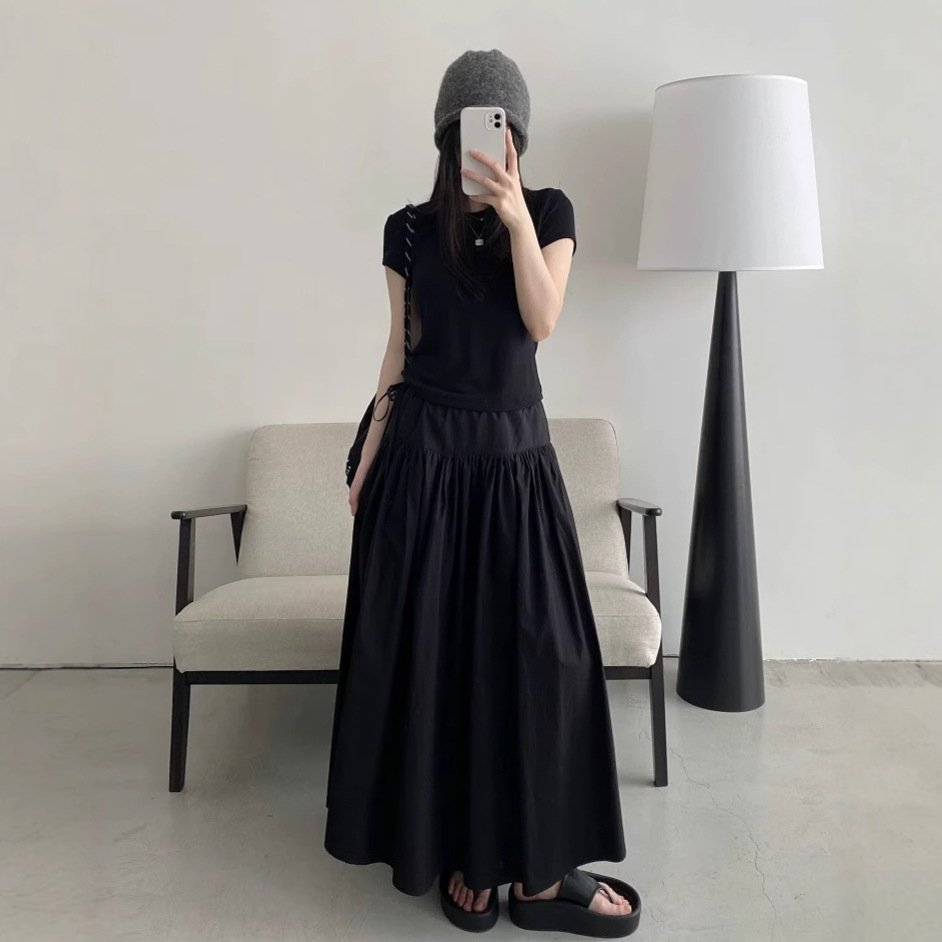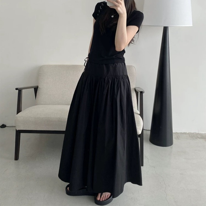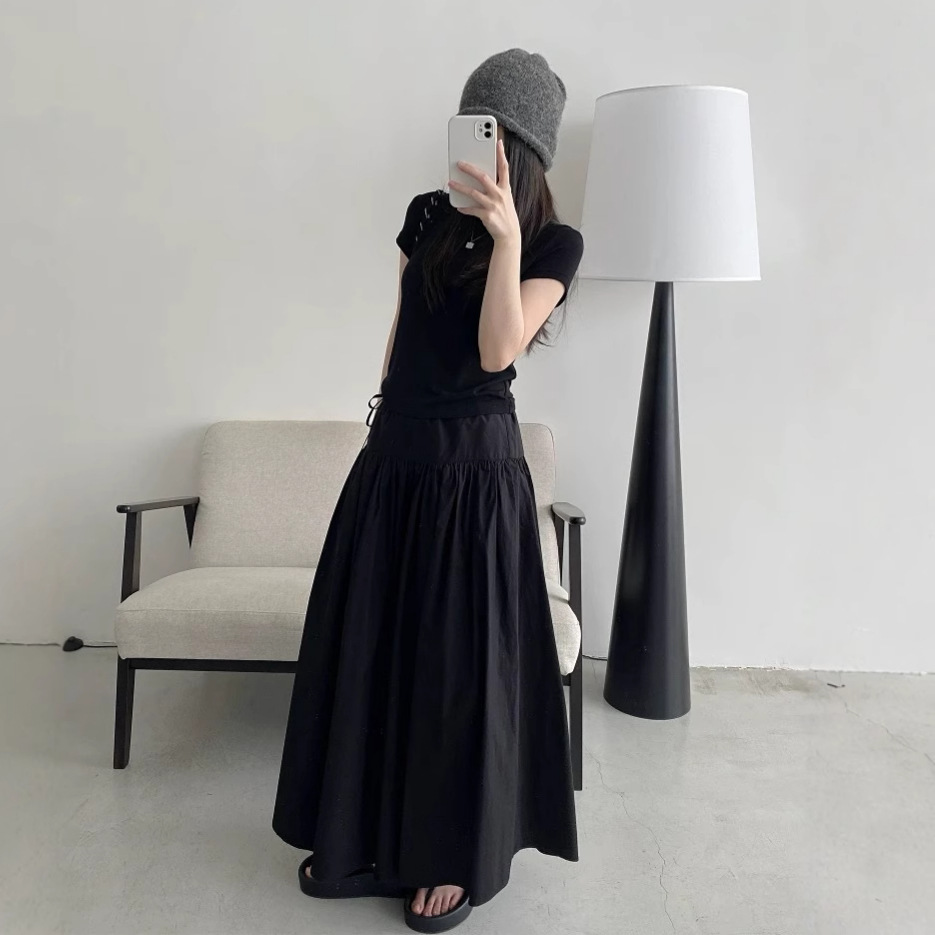 藏肉主义 黑色半身裙女夏设计感高腰抽绳中长款a字裙
