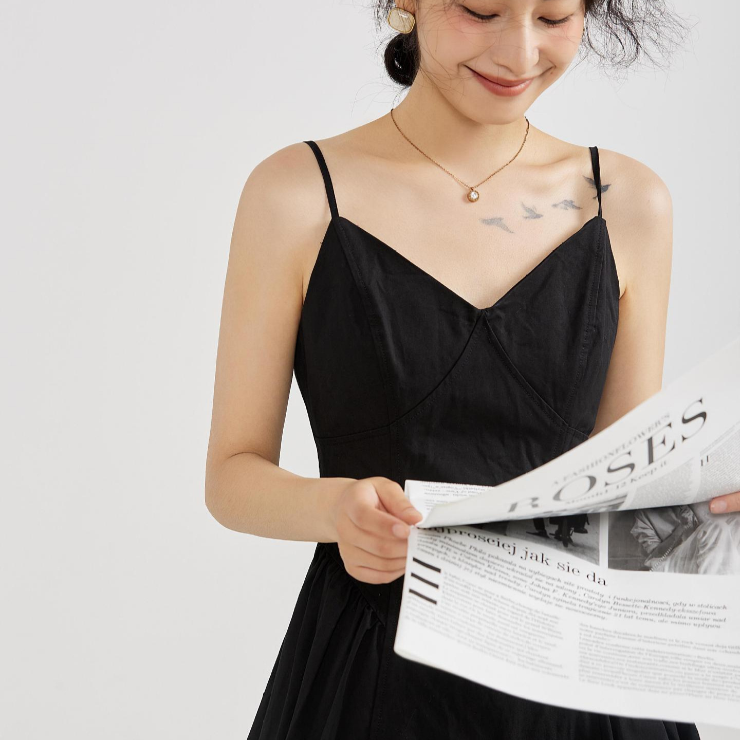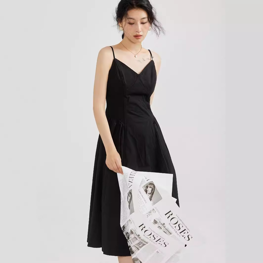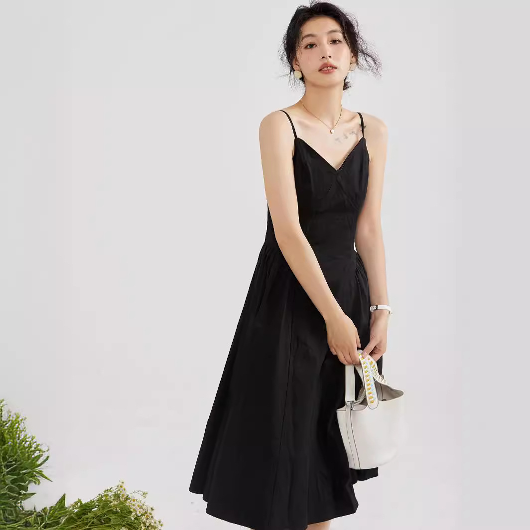 法式复古气质简洁设计收腰晚会礼服小黑裙吊带连衣裙X型