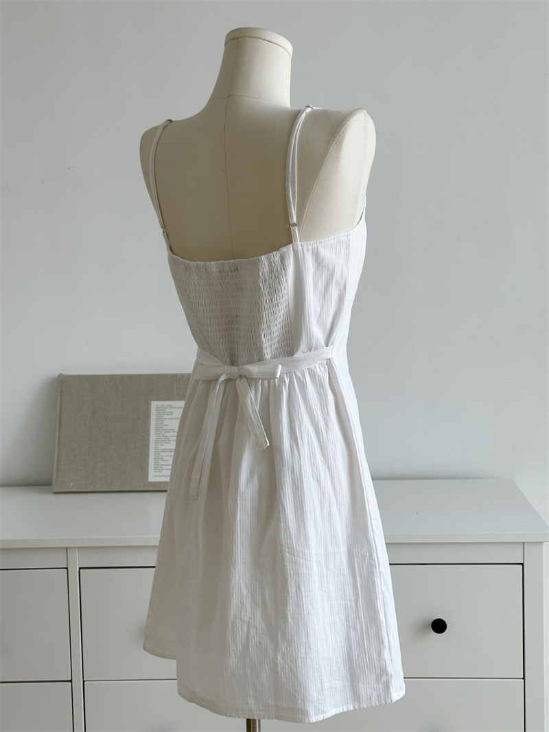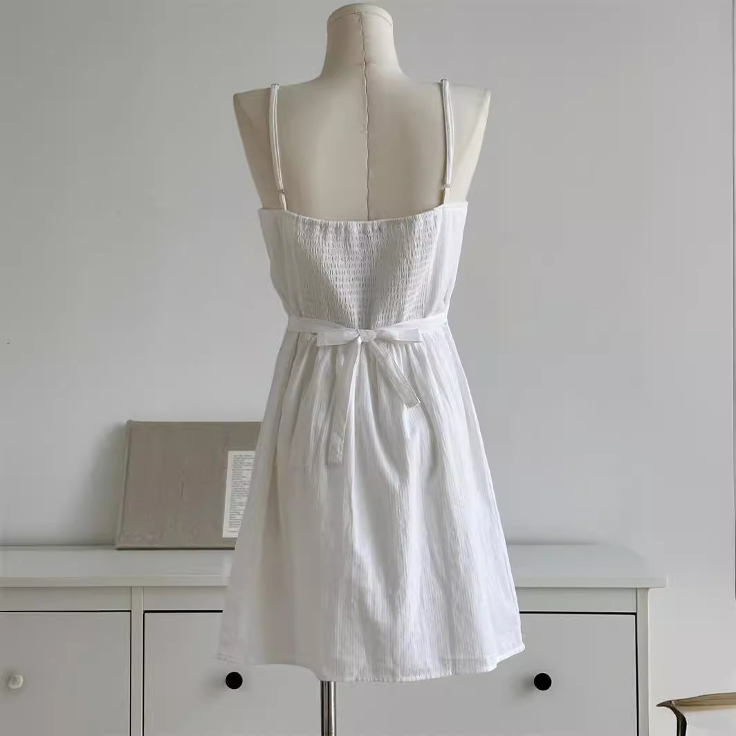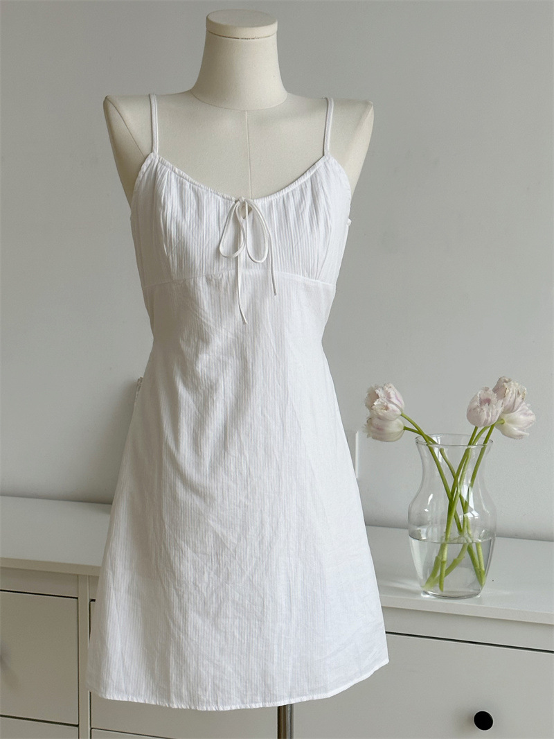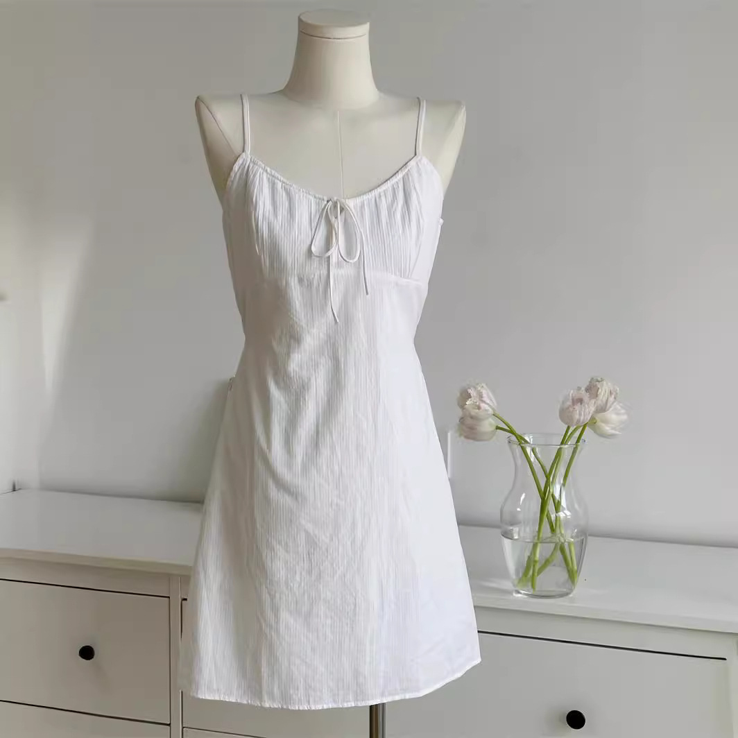 BM吊带裙美式少女连衣裙女夏纯棉竖条纹绑带甜美裙子