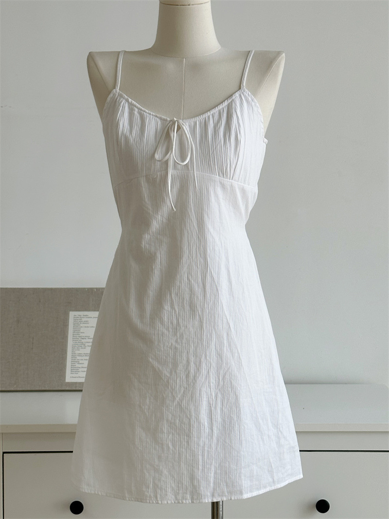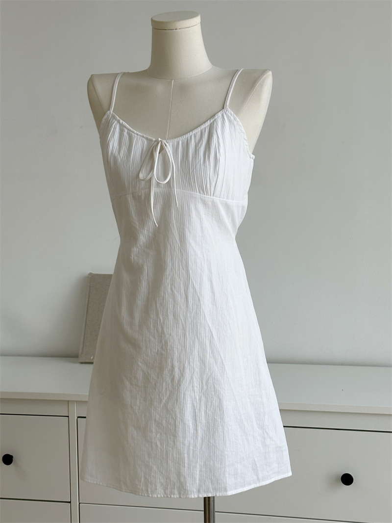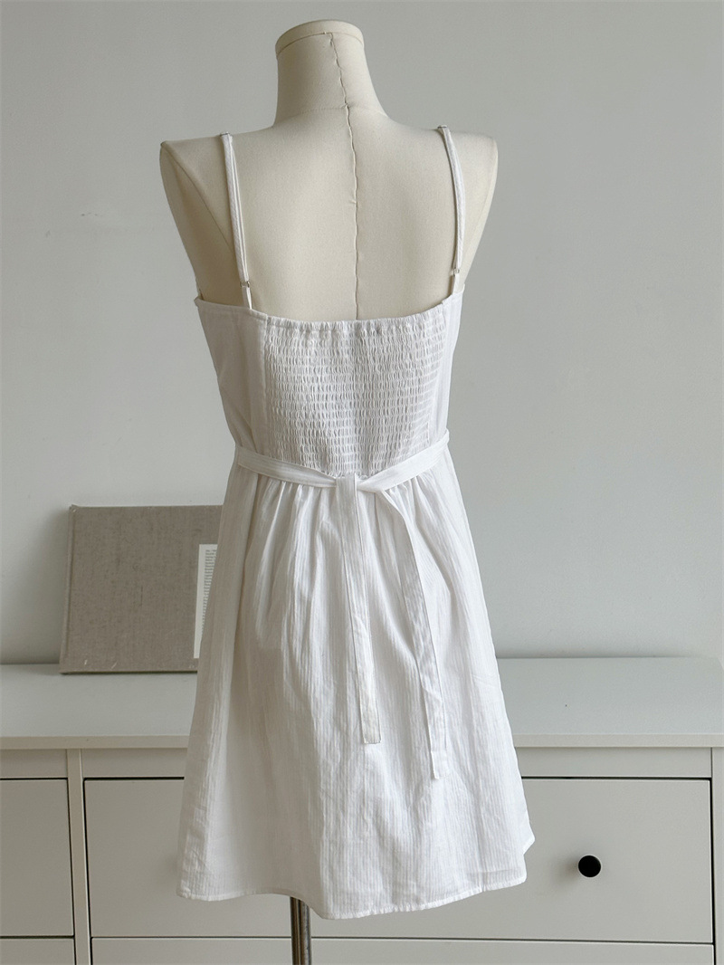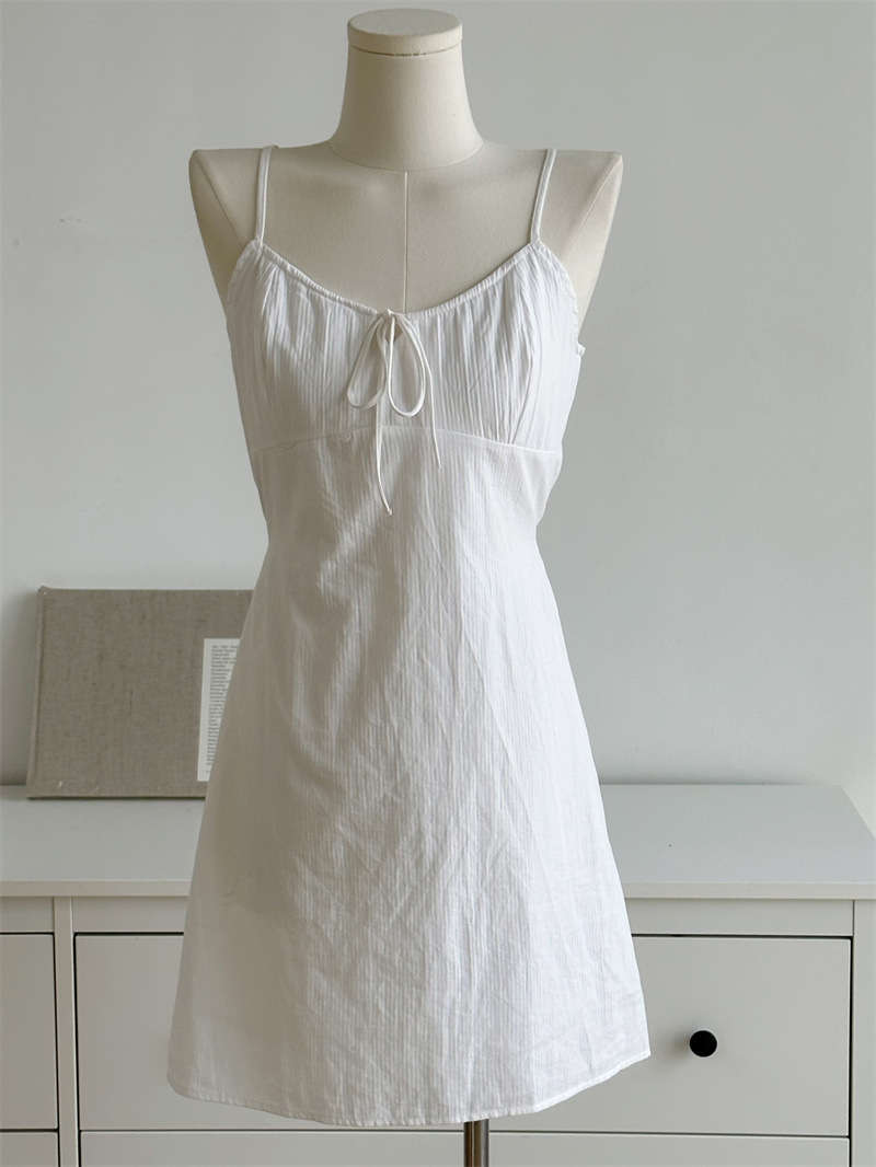 BM吊带裙美式少女连衣裙女夏纯棉竖条纹绑带甜美裙子