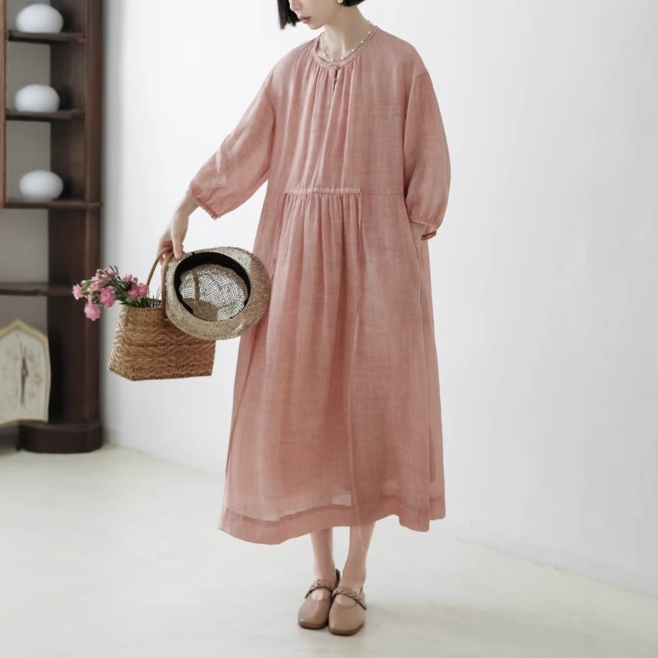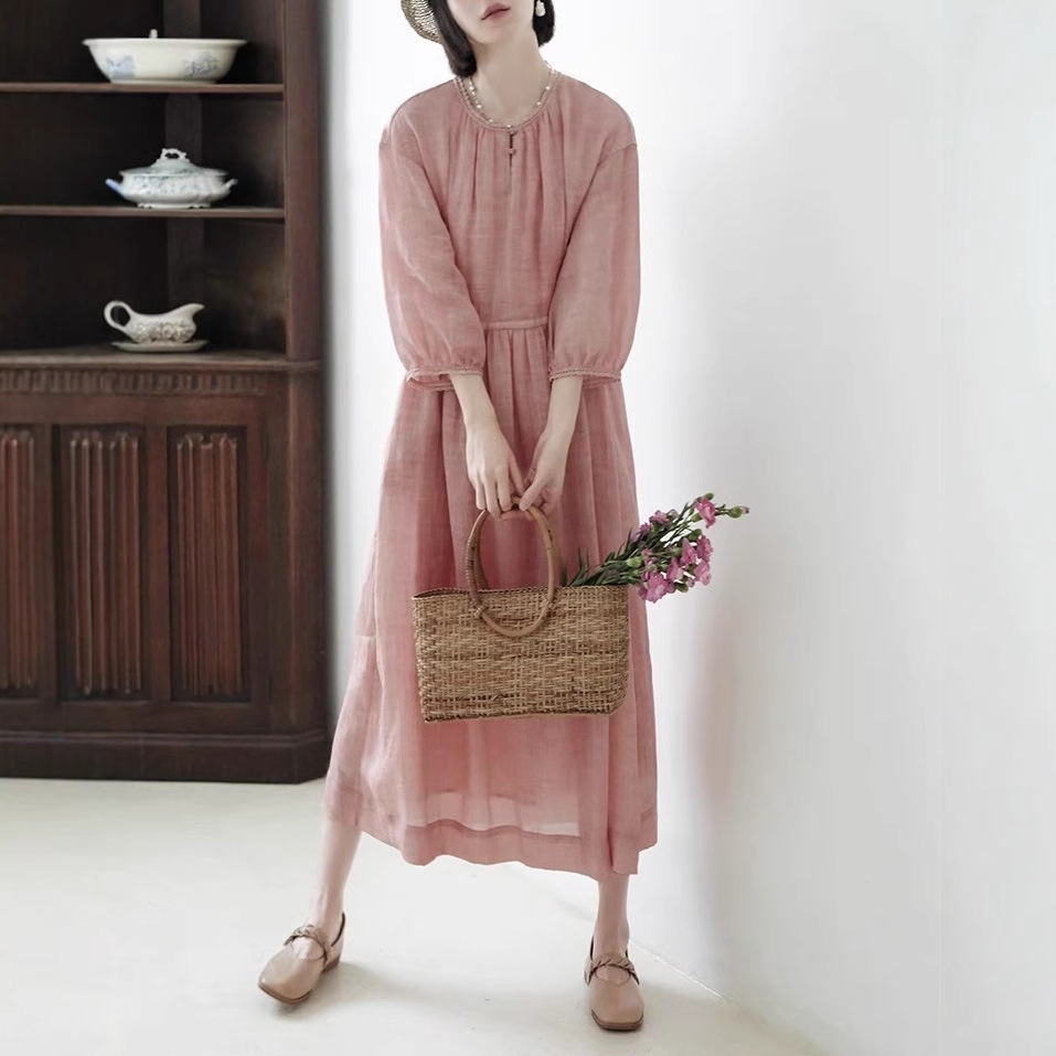 清透感纹肌理2025春夏新款连衣裙中长可然 安澜