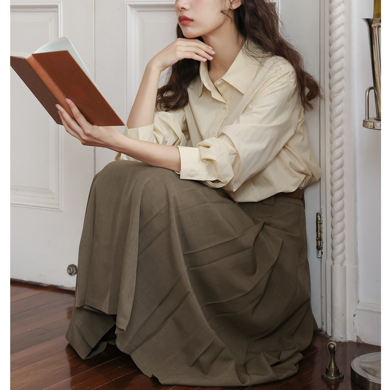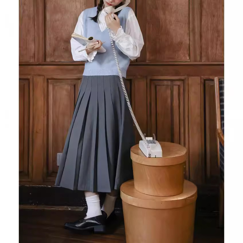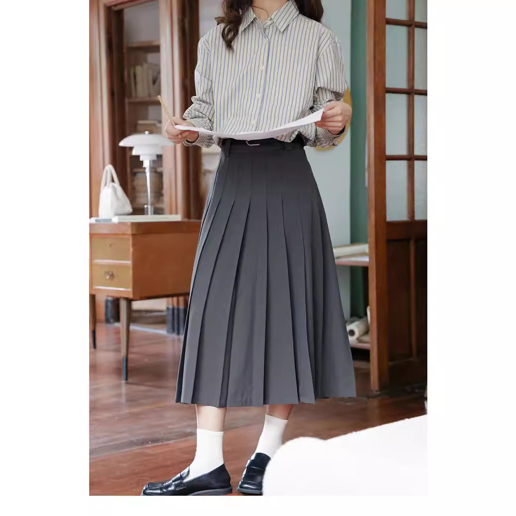 听风归/附赠腰带灰色百褶裙女新款a字长裙小个子高腰半身裙秋
