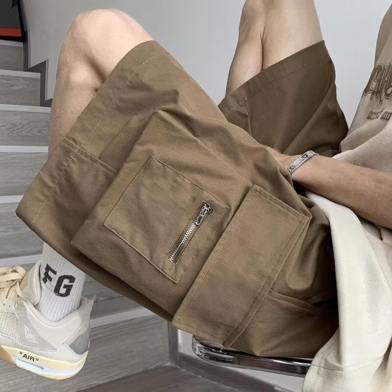 港风工装大口袋短裤男机能风潮牌宽松百搭潮流美拉德五分休闲裤子
