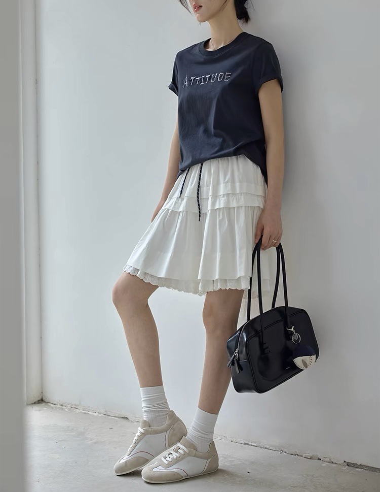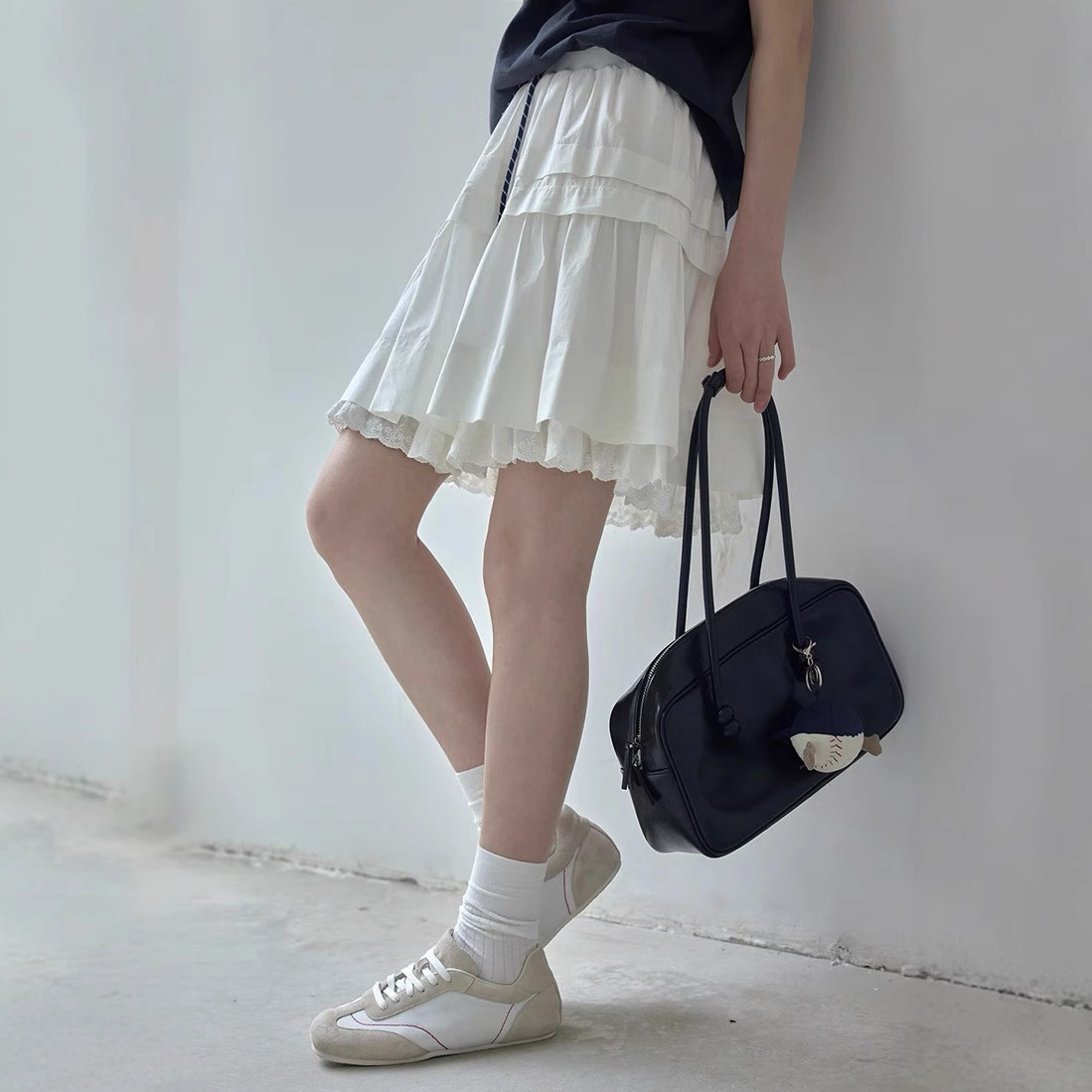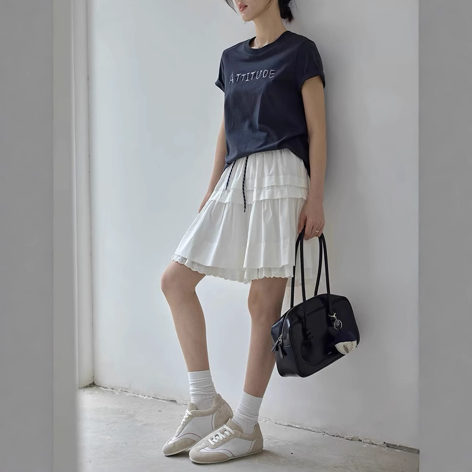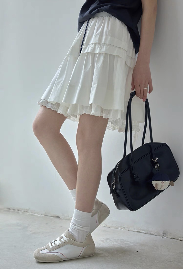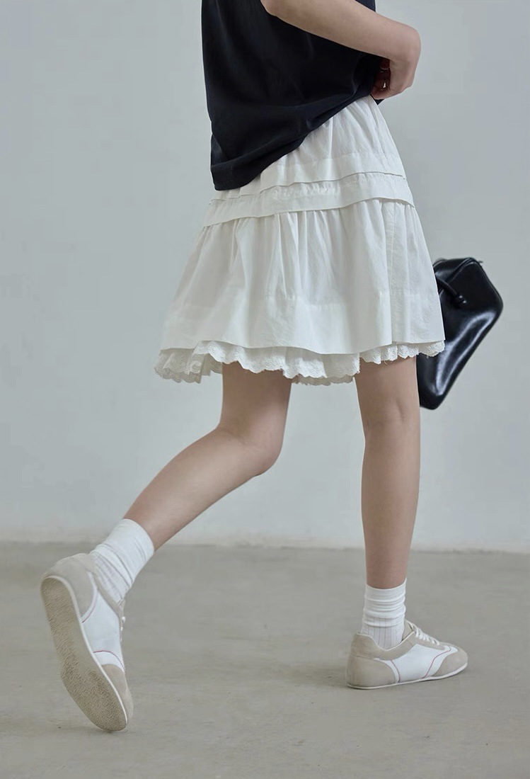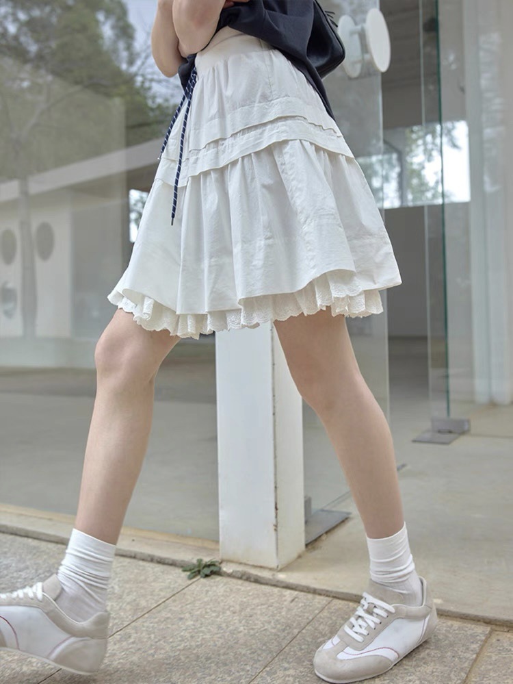 1313白月光活力A字层次花边小白裙夏日女抽绳半身裙短裙