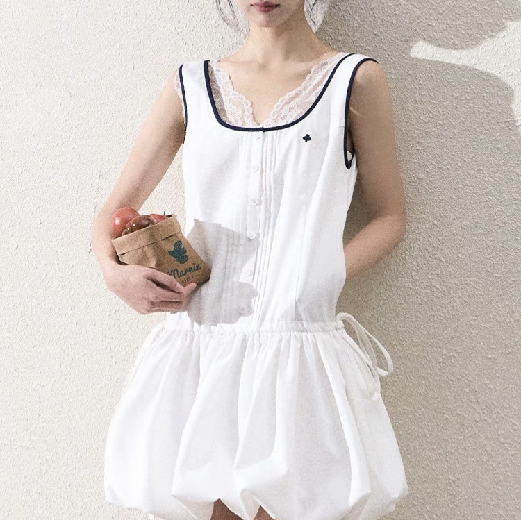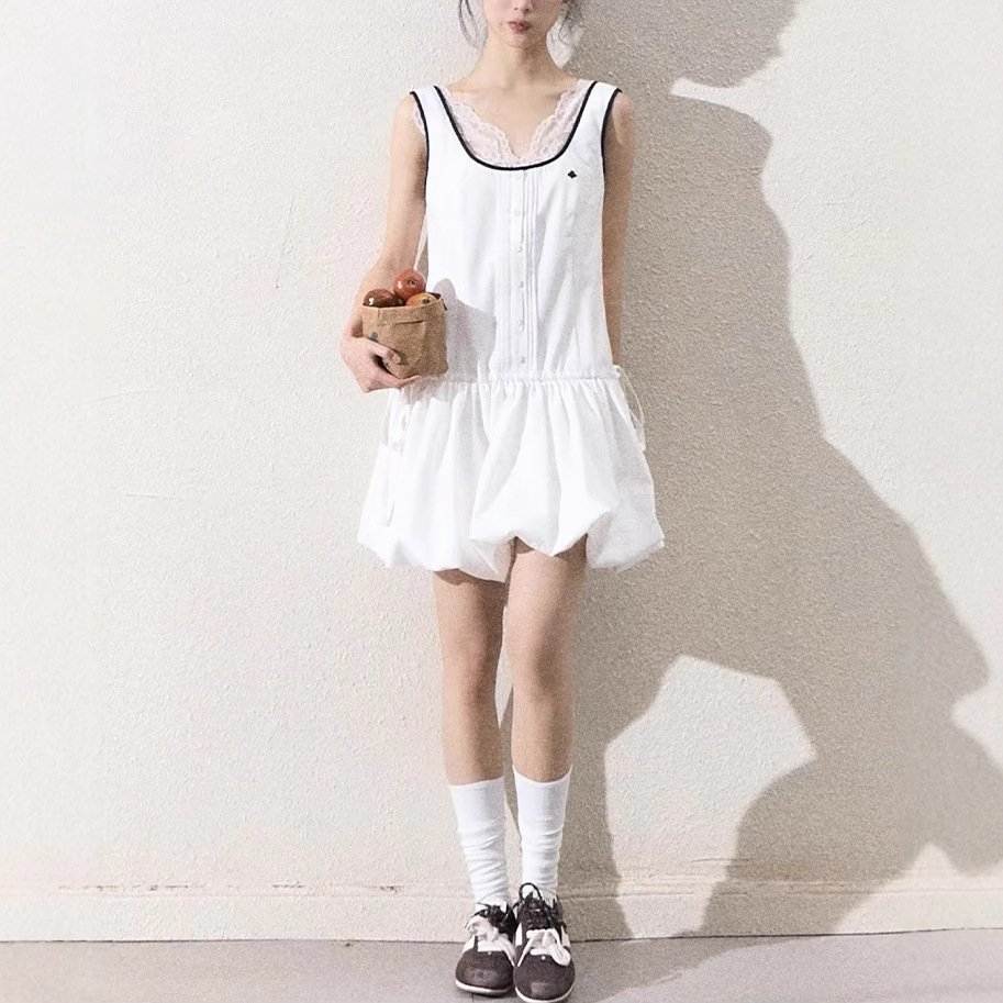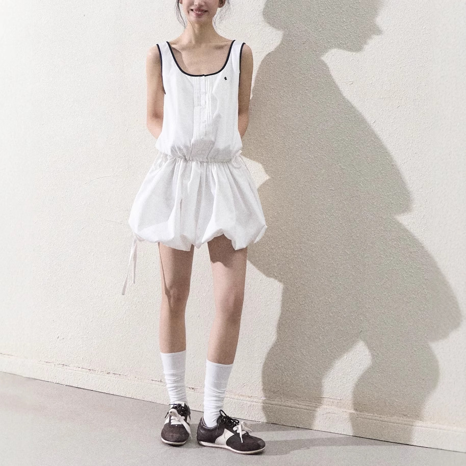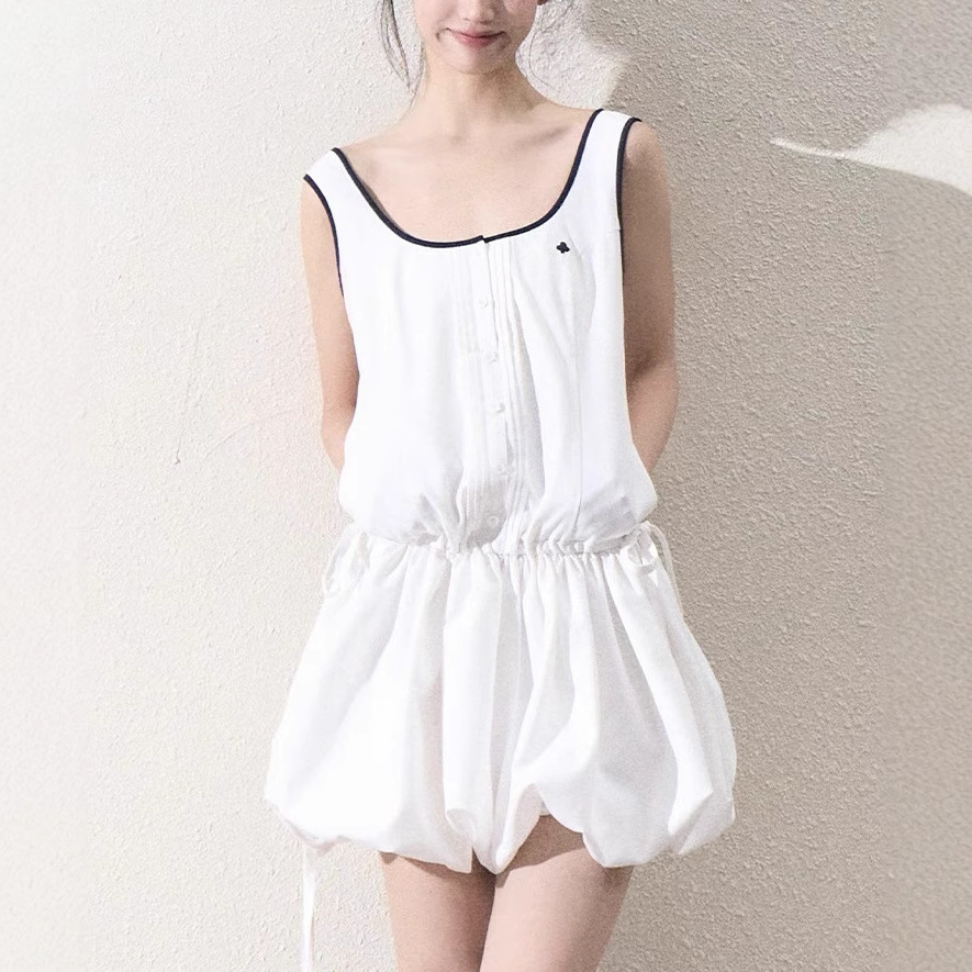 '少女的无序'运动休闲时髦无袖花苞裙气球气泡裙子连衣裙
