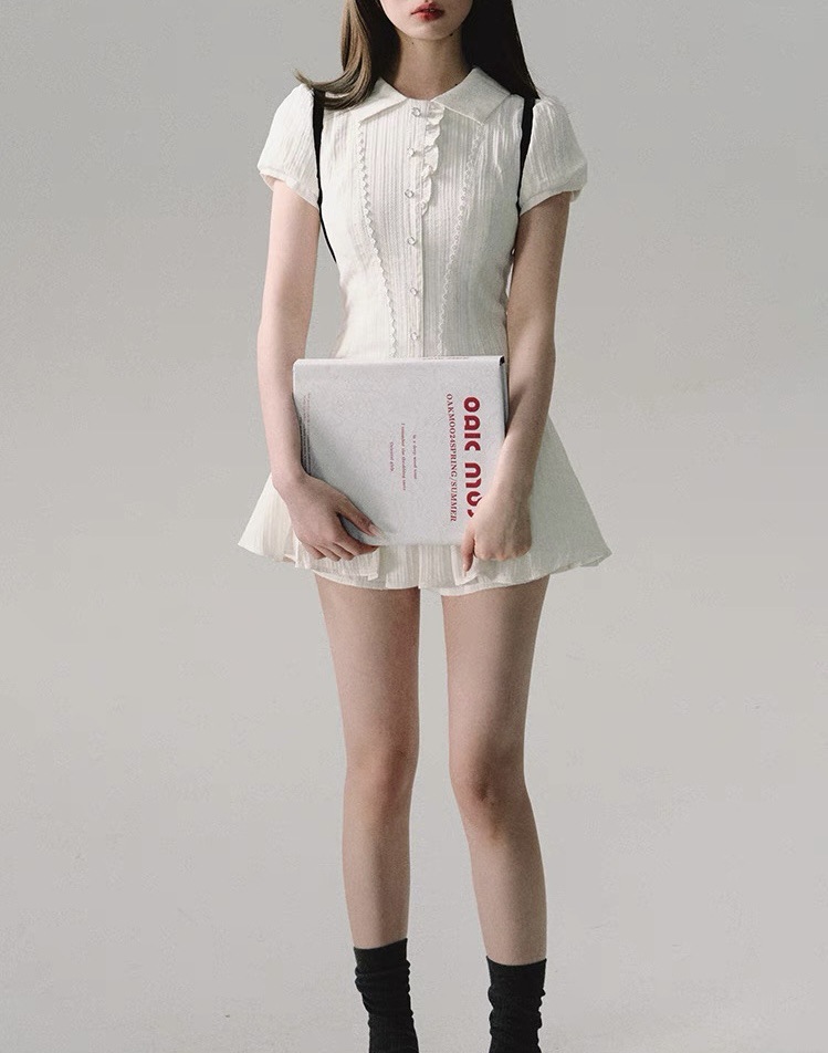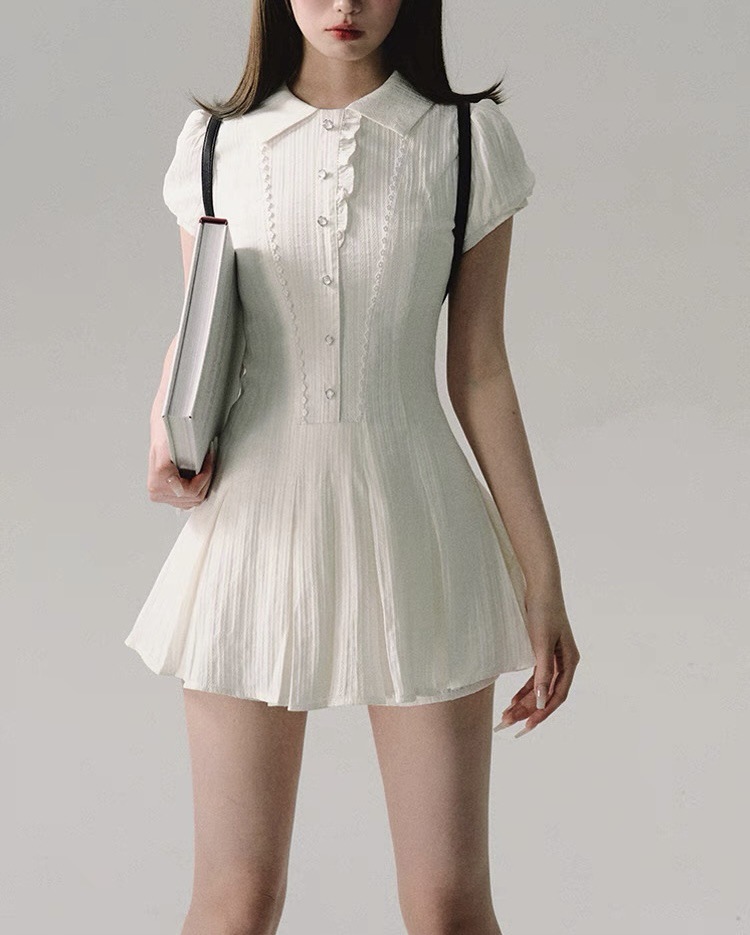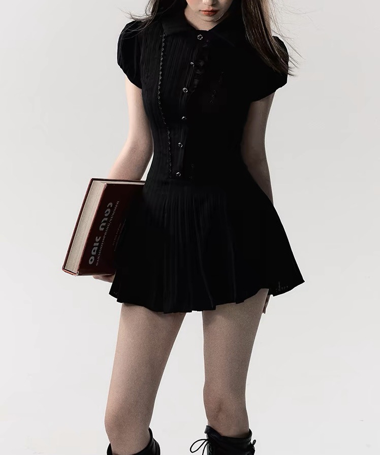 '等你下课'连衣裙a字裙短袖衬衫裙通勤学院风辣妹茶歇裙