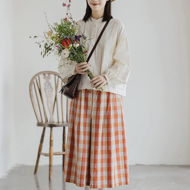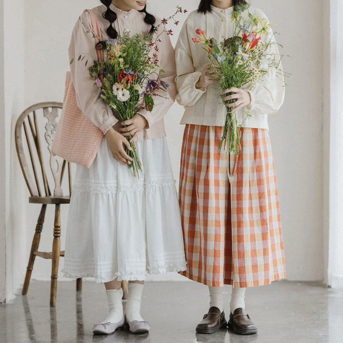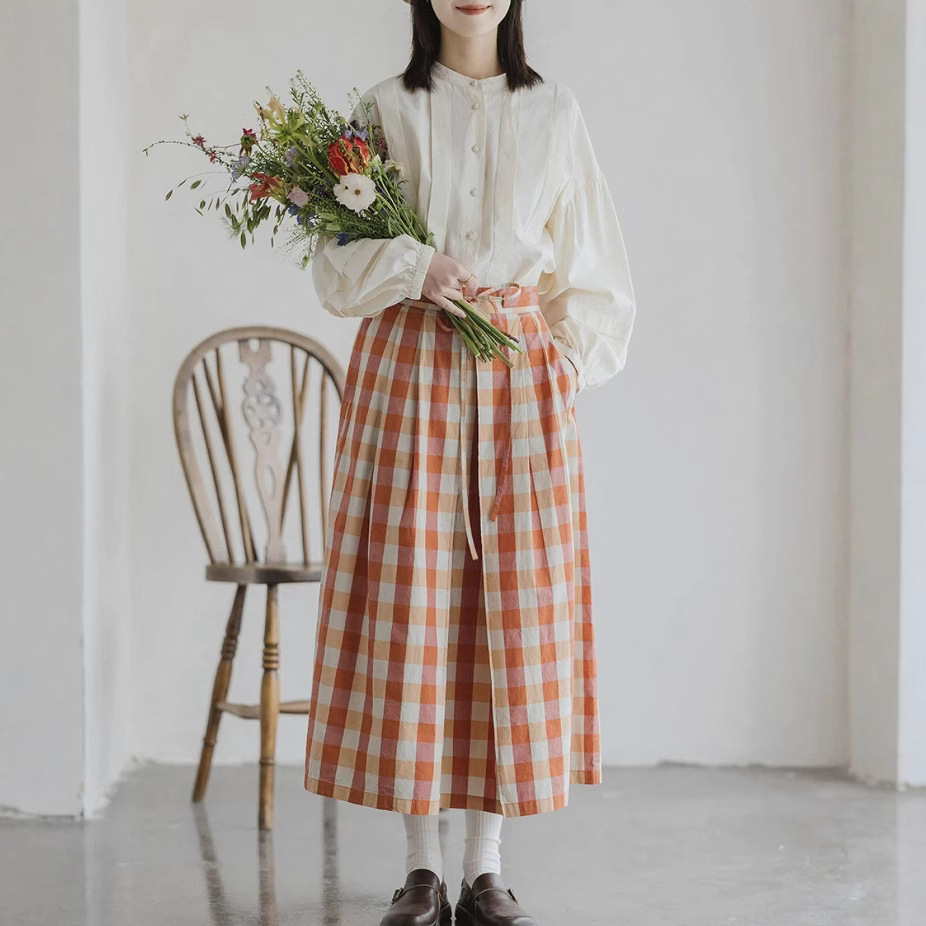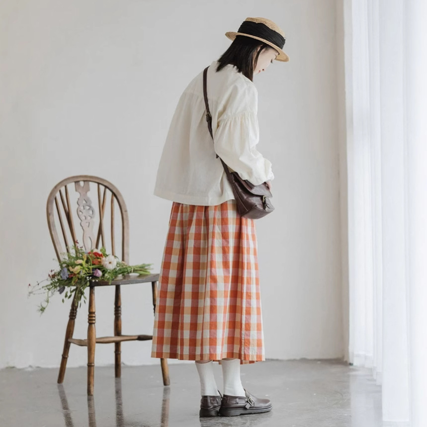 橘色调半身裙 舒适抽绳系带大摆裙 春日穿搭小个子显瘦裙子