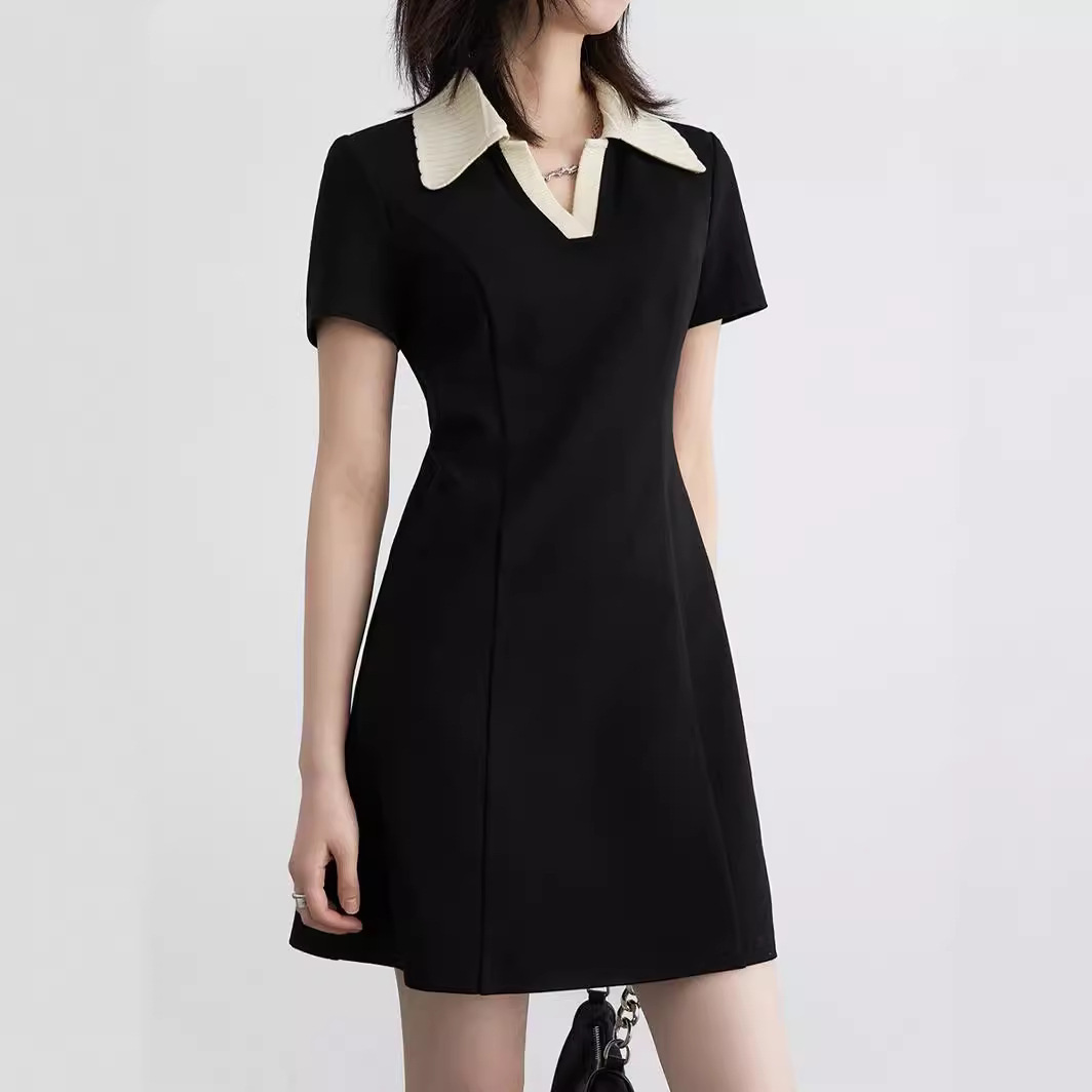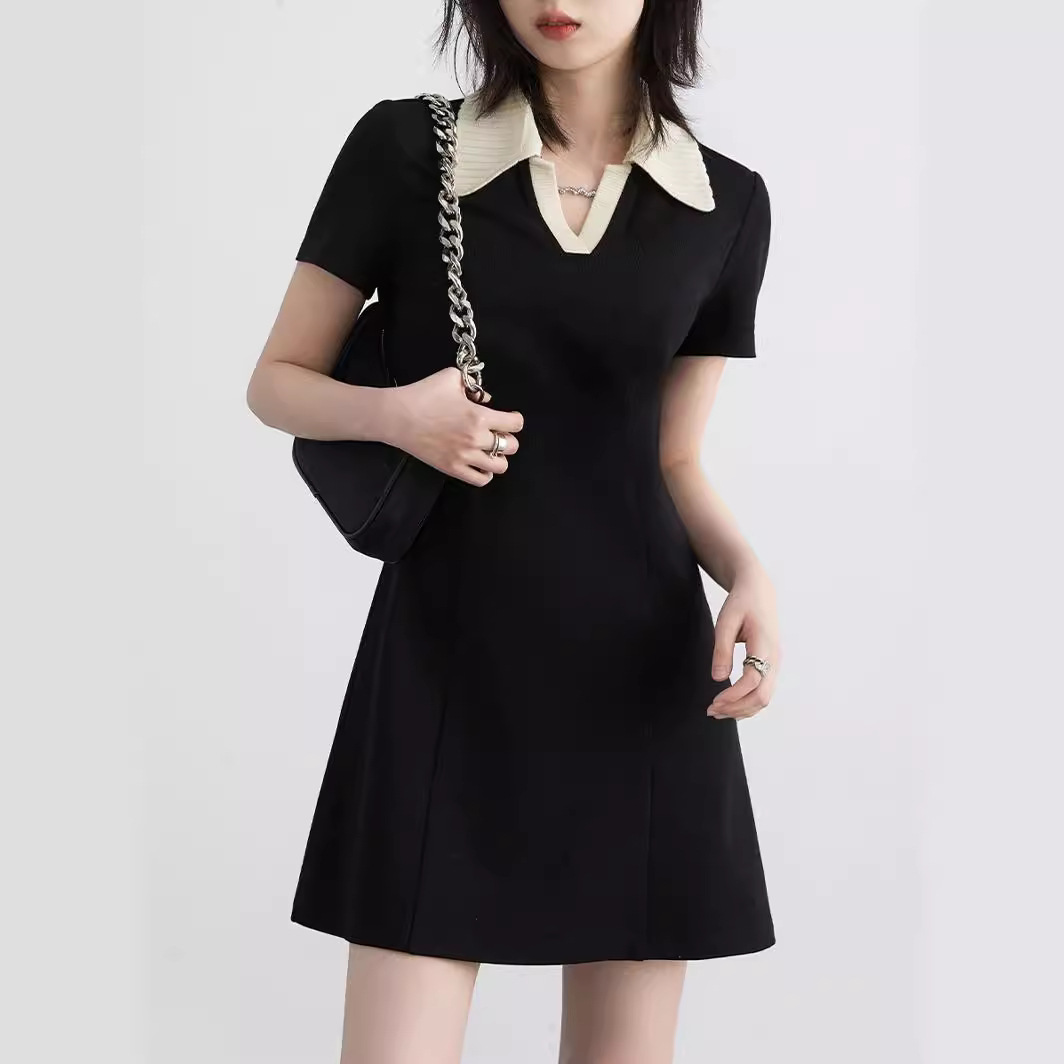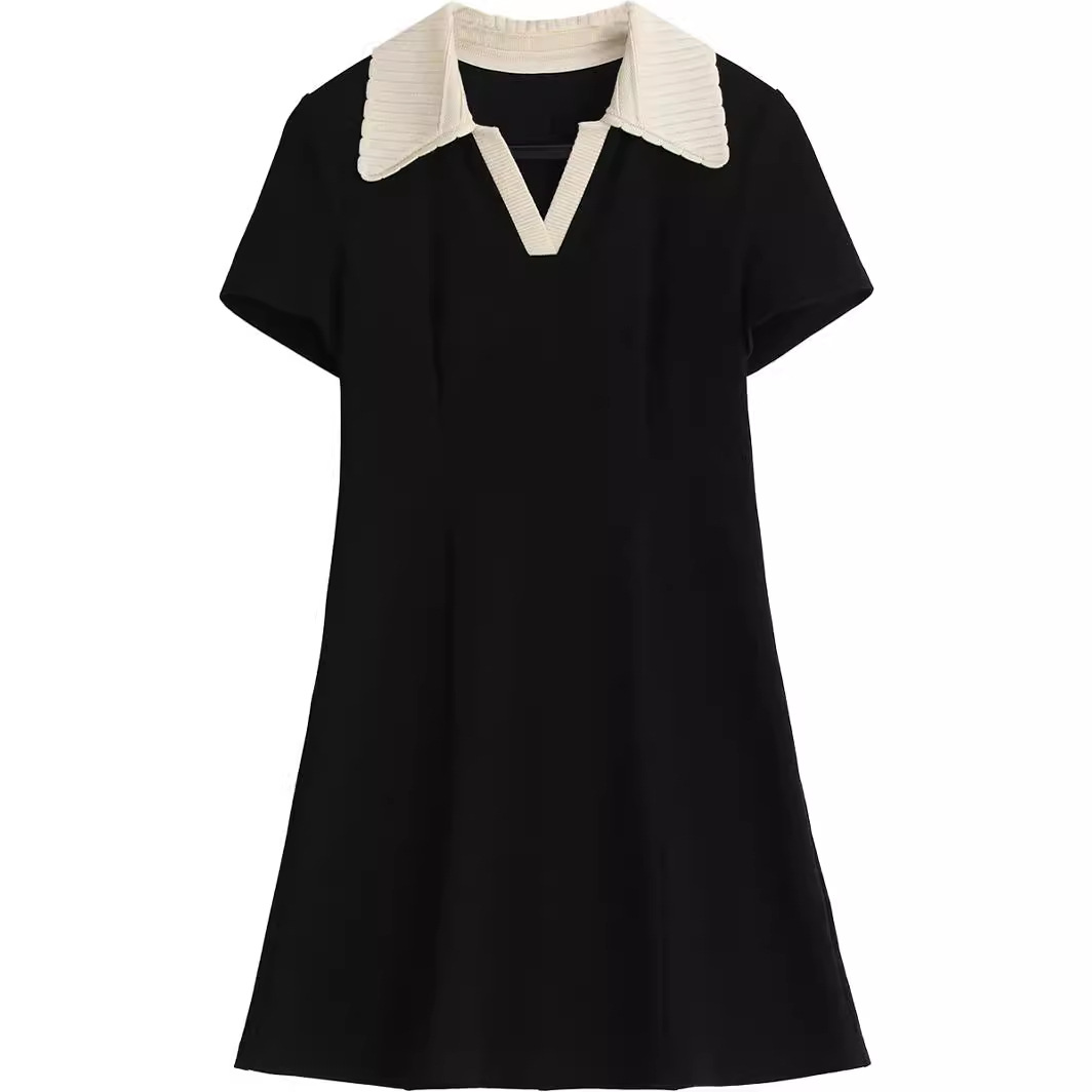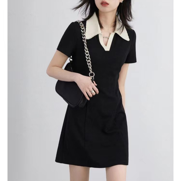 「浪漫出游」春季韩版撞色polo领短袖连衣裙修身收腰短裙