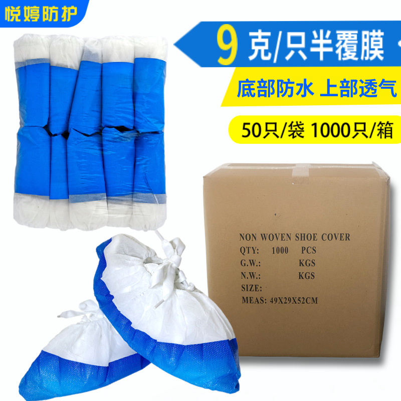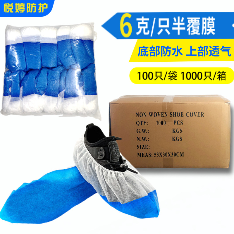 厂家现货一次性无纺布鞋套PP透气加厚耐磨防水PE覆膜室外防滑鞋套