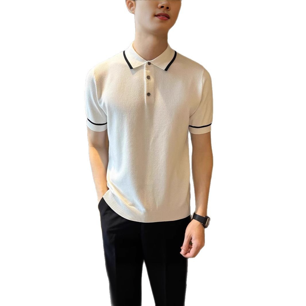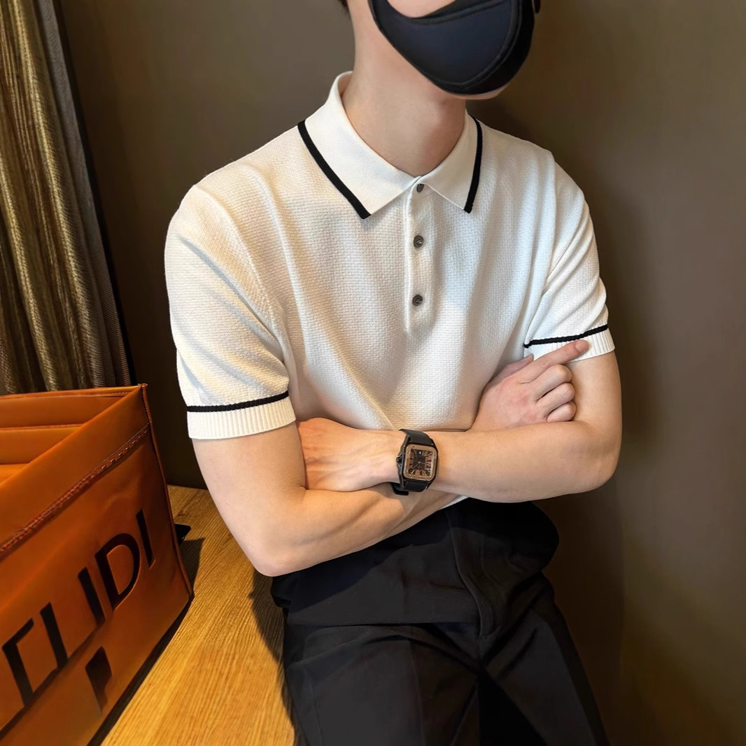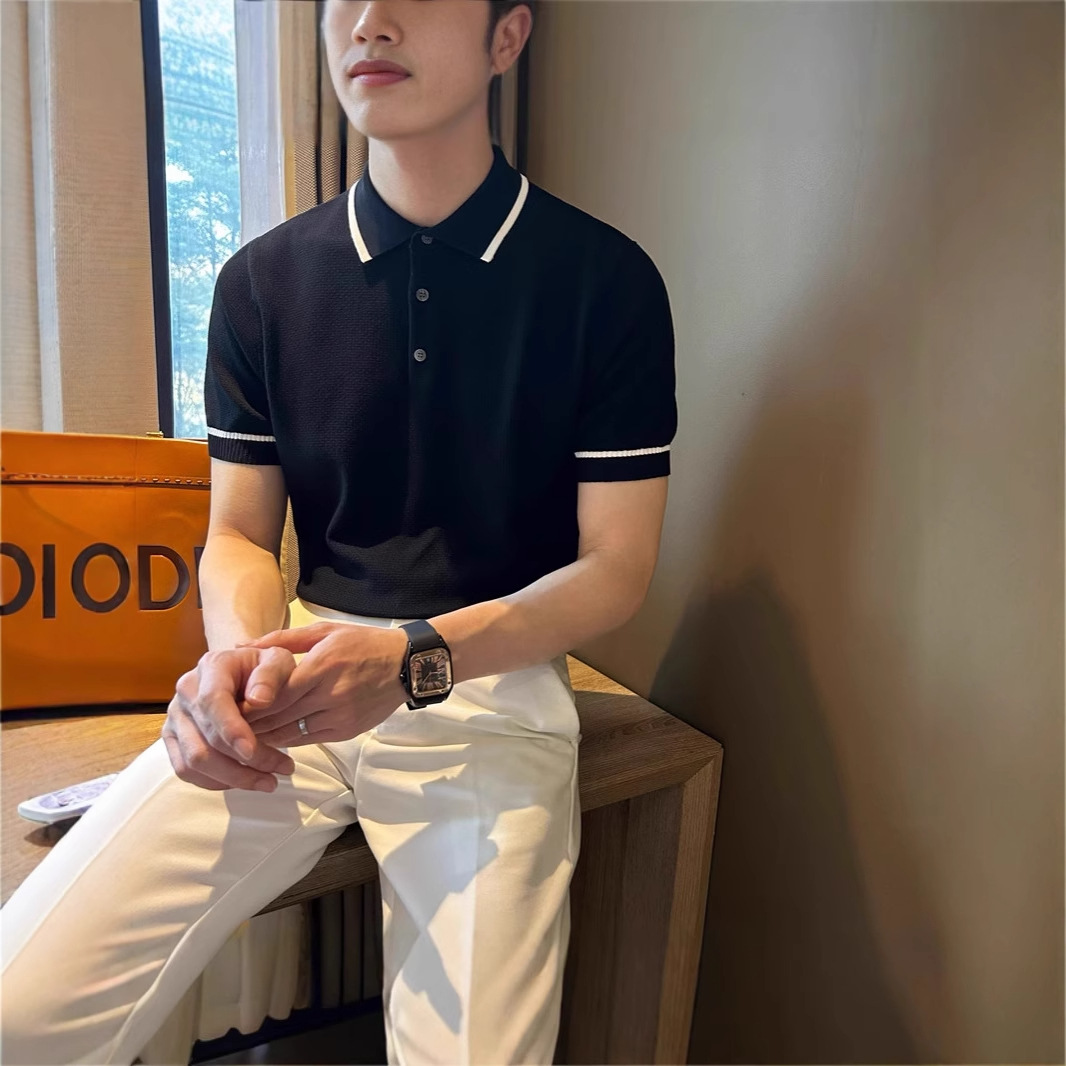 欧美简约轻薄透气针织polo衫男夏季新款拼色上衣休闲男士t恤短袖